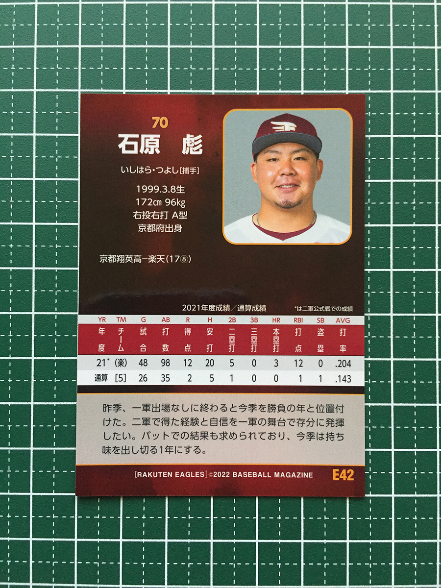 BBM 東北楽天ゴールデンイーグルス ベースボールカード 2022