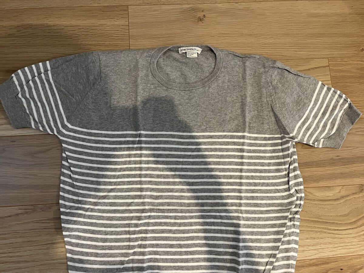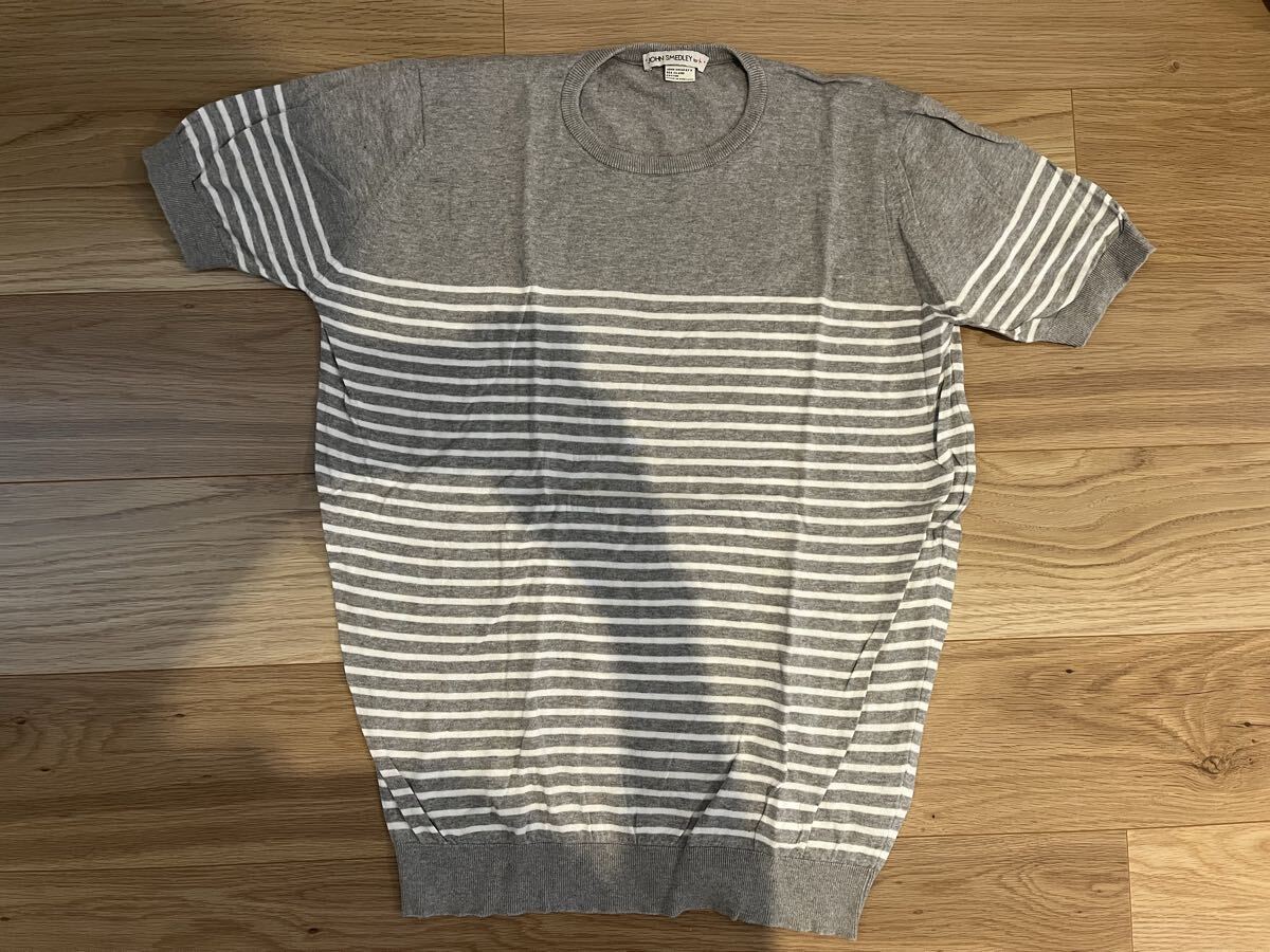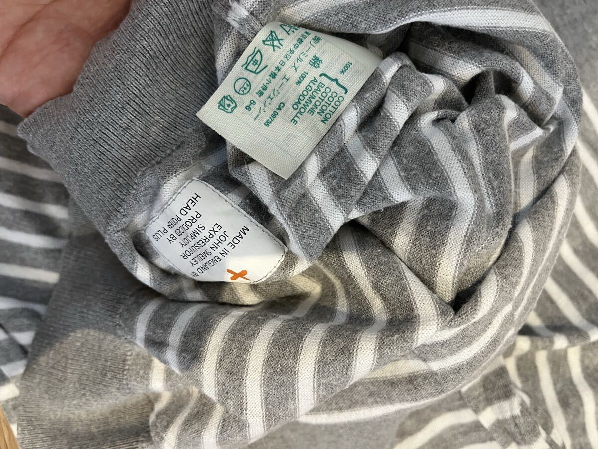 ヘッドポータープラス別注のジョンスメドレーの半袖ボーダーニット、サイズM。