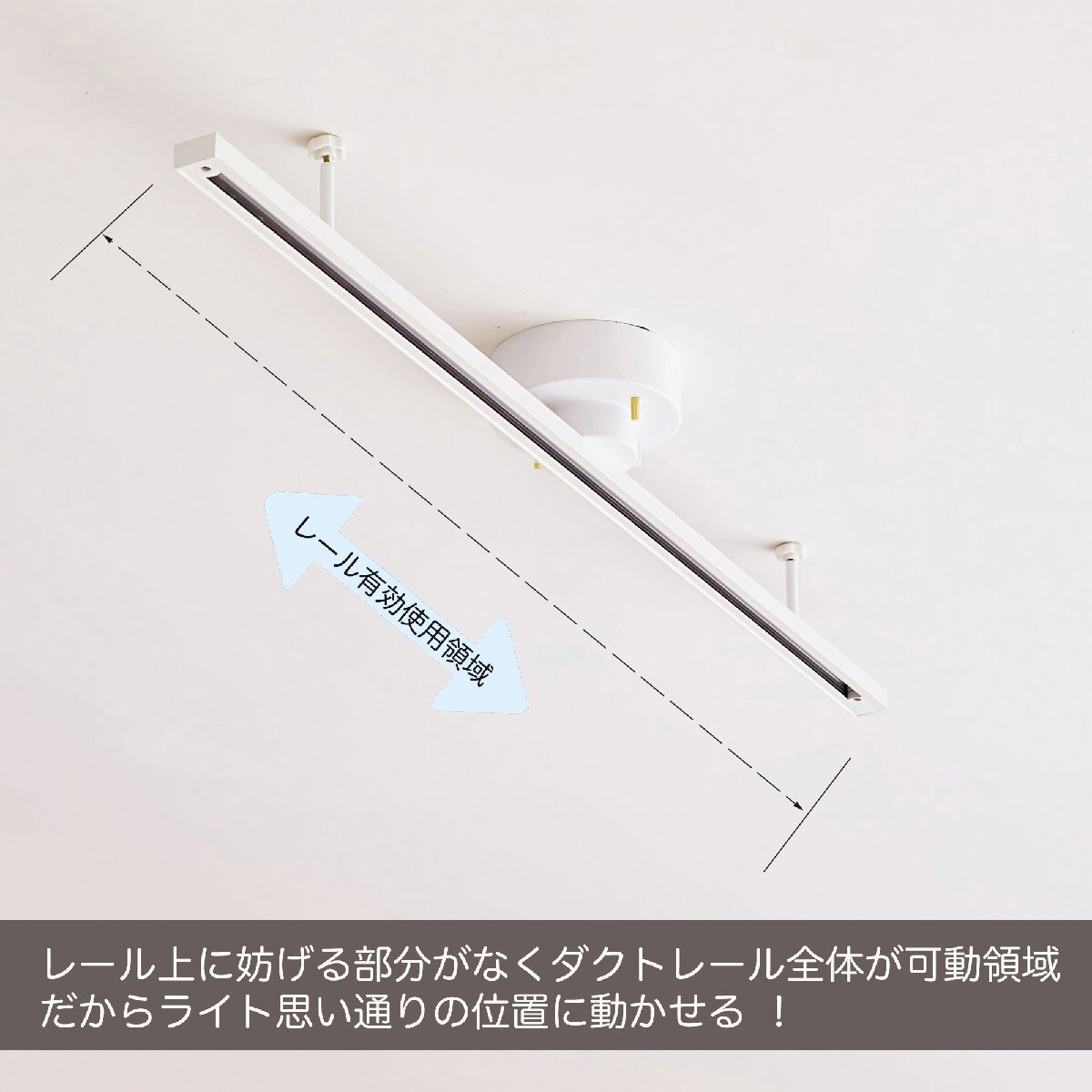 【ダクトレール全体が有効使用領域だから好きな位置にライトがつけられる!】レールほぼ全体が可動領域なので、通常のダクトレールのようなライトがつけられない端の部分や中間部分の位置にもライトの移動ができます。