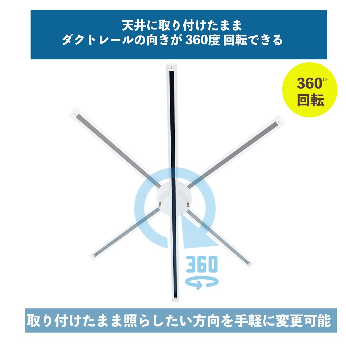 【天井に取り付けたままダクトレールの向きが 360°回転できる】向きを変更する際にわざわざ取り外ししなくても良いのでとても簡単です。360度回転するのでお好きな位置にライトの設置ができ、思い通りの位置に照明を持ってくることができます。