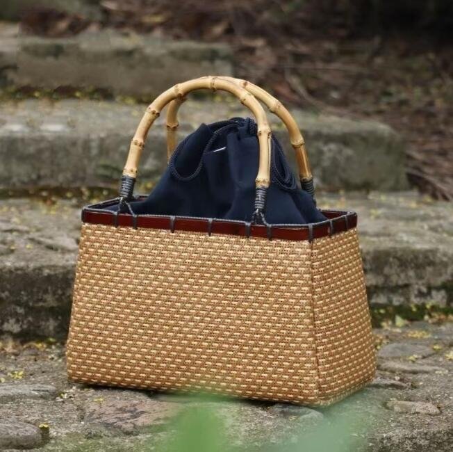 カゴバック  美品 手作りバスケット お洒落買い物カゴ 収納バッグ 可愛い新作