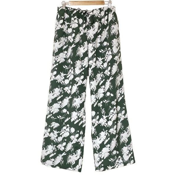 メアグラーティア meagratia パンツ サイズ2 M - ダークグリーン×白×マルチ レディース フルレングス/花柄/ウエストゴム 美品 ボトムス