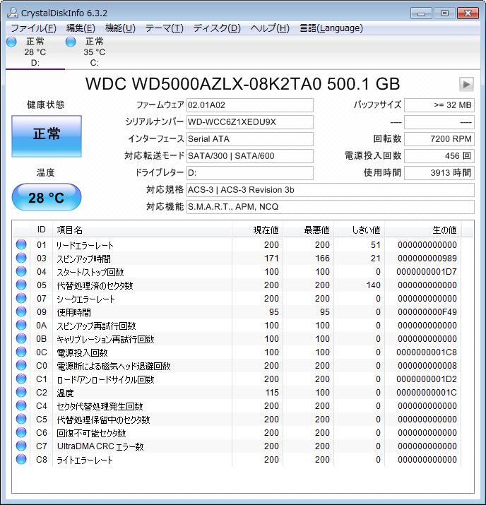 どちらにも不良セクタの表示は何もありません。動作は問題なく、良品と思います(^o^)