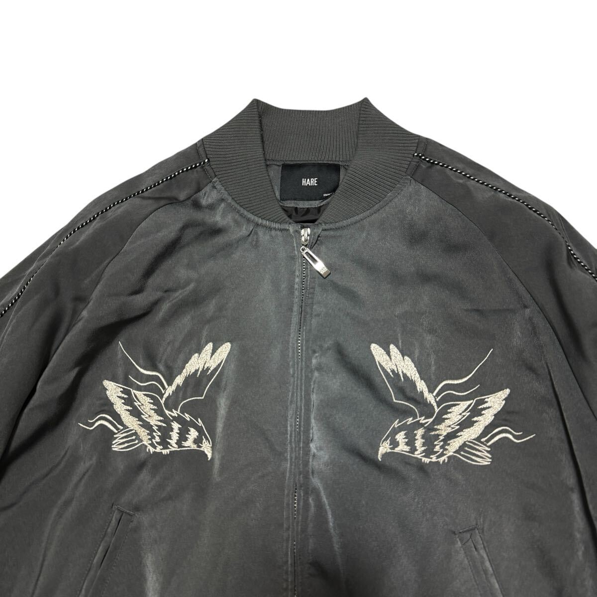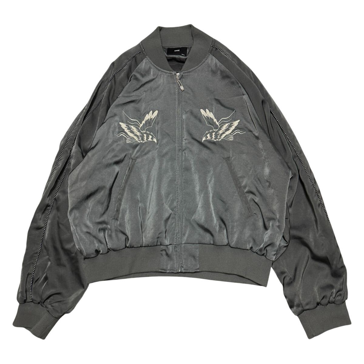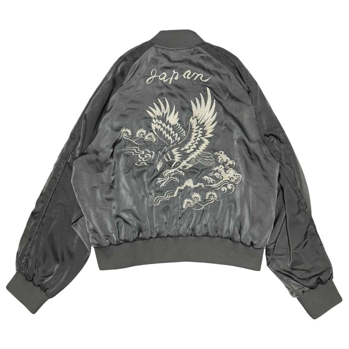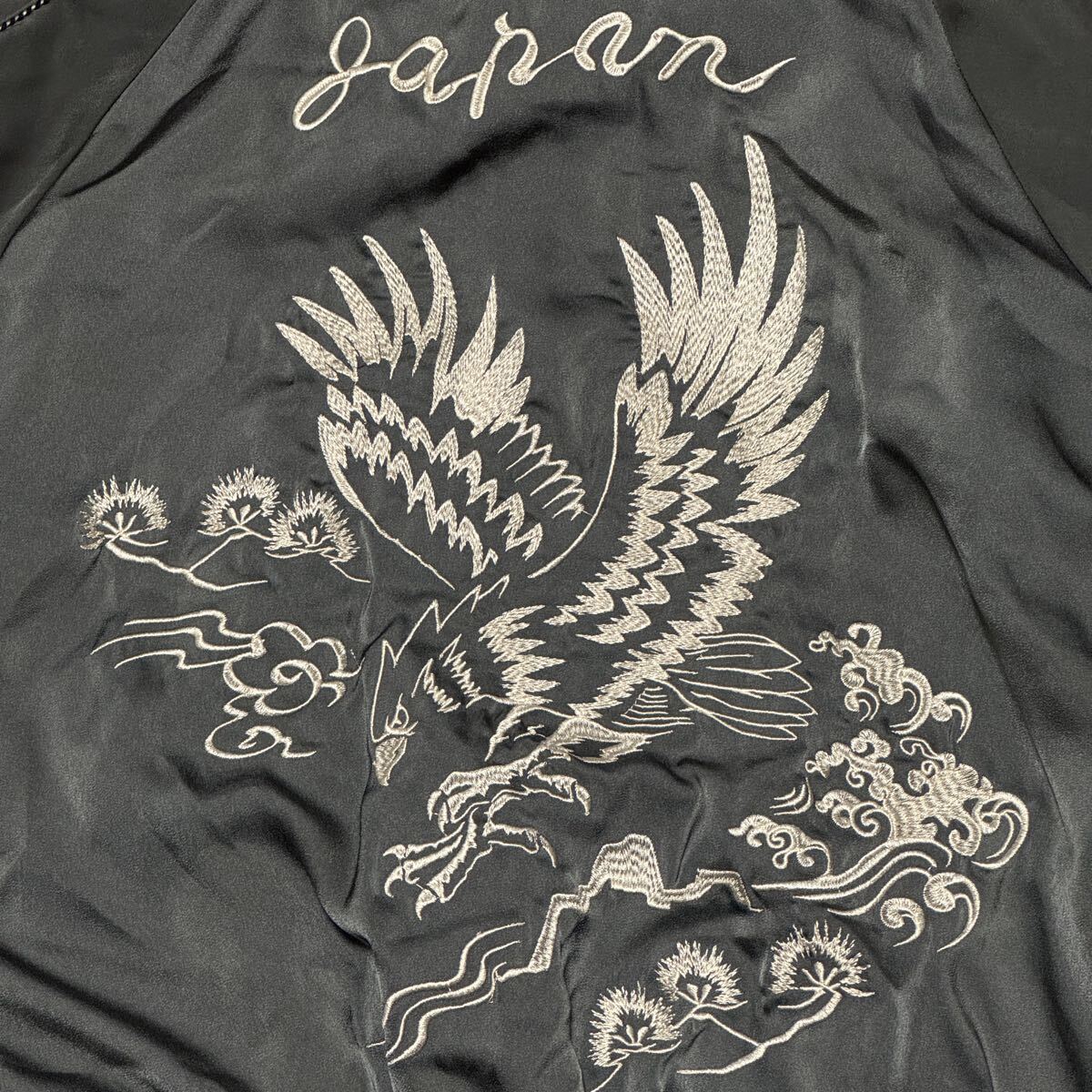 光沢感のあるサテン調ポリエステルを使用し、フロントには飛翔する鳥、バックには「Japan」ロゴと大きな鷹の刺繍が施された存在感あるデザイン。