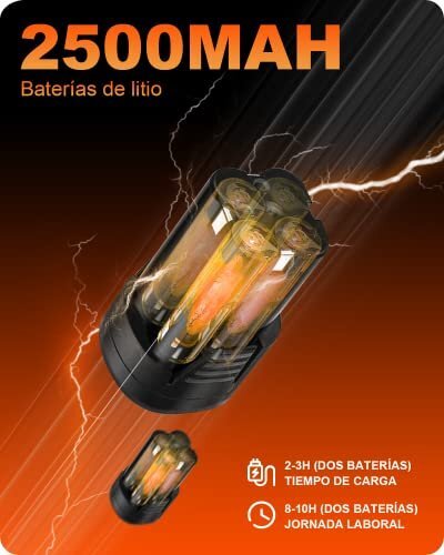 【作動時間長い】:私たちの電気剪定鋏は2500の電源が2個付属しています。充電器は、電源2個を同時に充電することができます。23時間フル充電後、810時間作業できます。