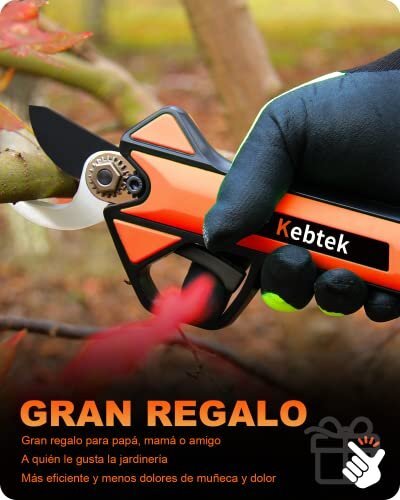 【持ち運び便利&人間工学に基づいたデザイン】:Kebtek電動枝切り鋏は電源装着時の重量はわずか880Gです。軽量で片手でも操作できます。付属のキャリーケースに収納したり、別売りのウェストバッグに入れたりすると、外出作業が楽になります。人間工学に基づいたハンドルデザインは手にぴったりとフィットし、長時間使用しても手に負担がかかりません。