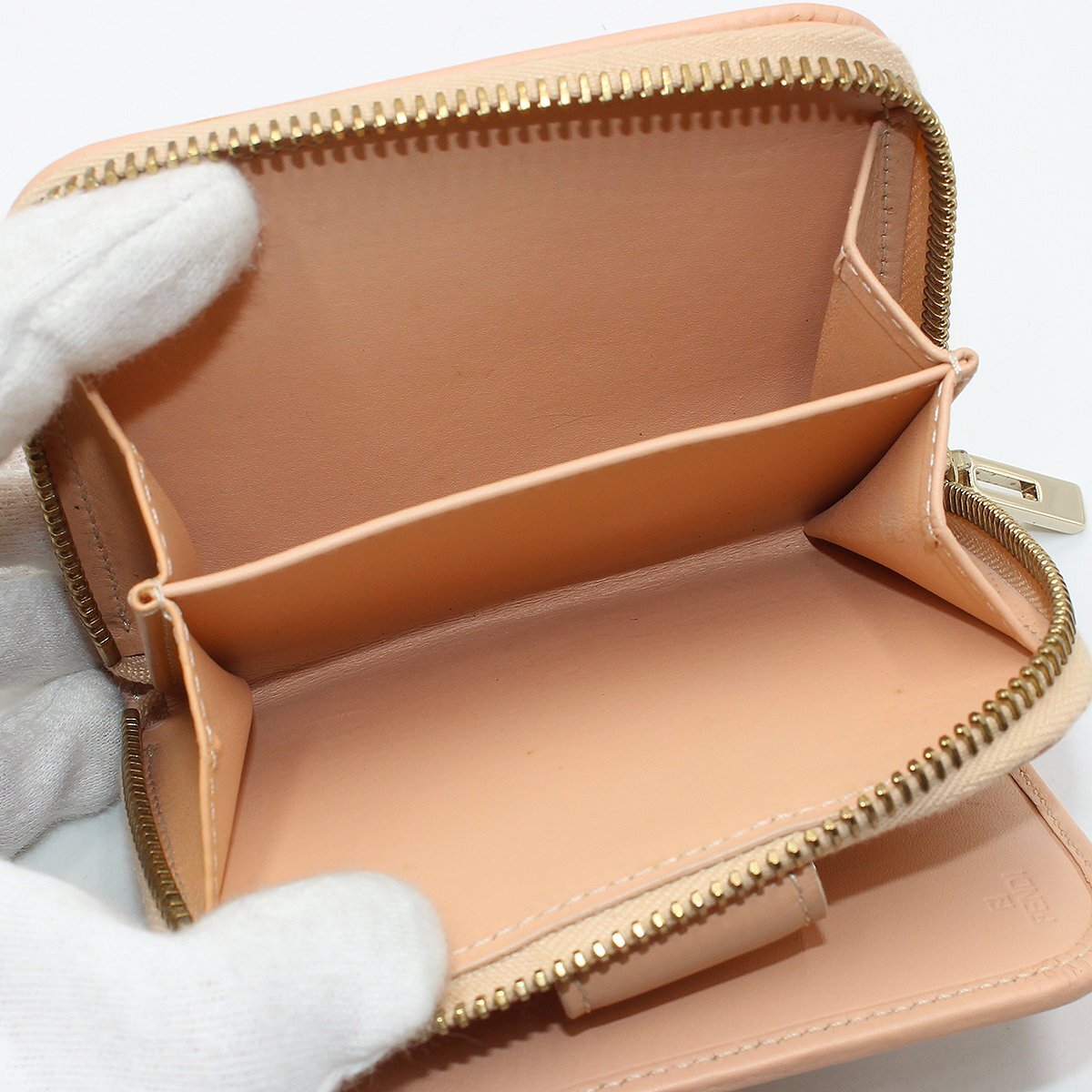 商品説明 | 【商品情報】 ブランド:フェンディ 商品:ズッキーノ ラウンドファスナー財布 原産国:イタリア シリアル/刻印:8M0070 カラー:ライトピンク×ゴールド金具 素材/ライン:キャンバス×レザー サイズ(約):W10.5 x H10.0 x D2.5 (cm) 付属品:-- ランク:外側 SA 内側 SA-A 【詳細説明】 外側:金具に少々のスレキズや汚れがございますが、その他目立つダメージなくとても綺麗な状態です。 内側:コインケース内に若干の薄汚れがございますが、その他目立つダメージなく綺麗な状態です。 *写真の色味が実物と異なる場合がございますのでご了承ください。
