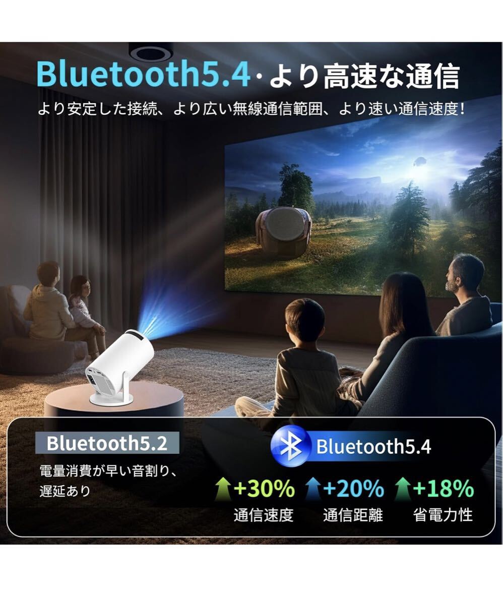 【超高速5G&2.4G・Wi-Fi 6・Bluetooth5.4対応】小型プロジェクターは超高速2.4G+5Gの周波数帯を同時利用でき、安定した信号と高い伝送速度を備えた超高速 6G WiFi 接続テクノロジーも備えています。遅延を最大60%削減されて、より高速で安定したインターネット接続を実現します。Wi-Fi経由でiOS、AndroidおよびWindowsデバイスを素早く接続でき、超スムーズで遅延のないオンラインゲーム、映画鑑賞、ビデオ学習体験を簡単に楽しむことができます。Bluetooth5.4対応により、ご自宅のワイヤレススピーカーと接続すれば、映画館級のサウンド環境を簡単構築。リビングの映画鑑賞から友人とのゲームナイトまで、ワイヤレスと有線を使い分ける柔軟性が、シーンに合わせた最適なエンタメ体験を実現します。