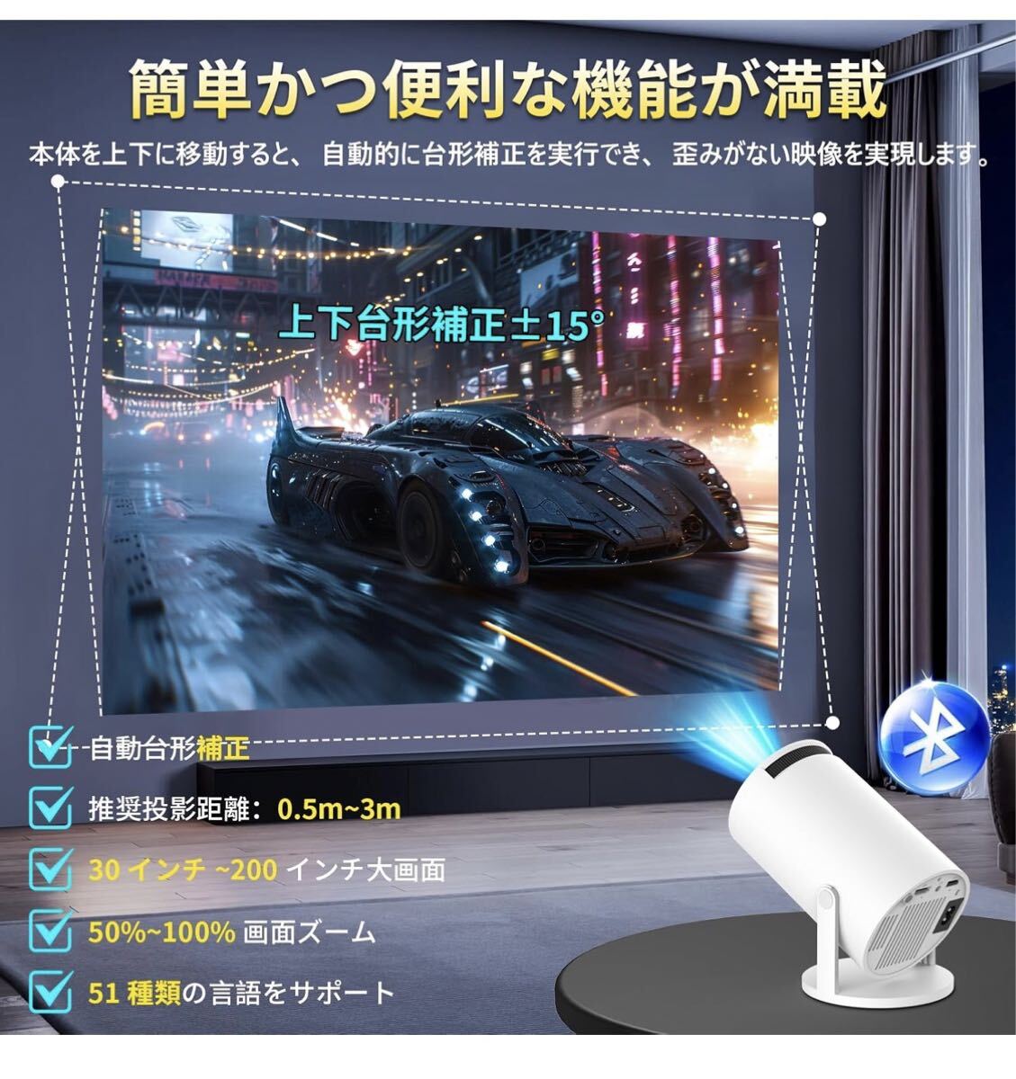 プロジェクター 家庭用 【12025最新進化AndroidTV搭載 ・18000LM・270°回転・4K対応】 接続Bluetooth5.4 1080P高輝度 自動台形補正 短距離投影 プロジェクター 小型 ホームプロジェクター Wi-Fi6瞬時接続 内蔵HiFiスピーカー 天井投影 APP利用可能IOS/Android/パソコン/DVD/PS機/SWITCH接続可 日本語取扱説明書