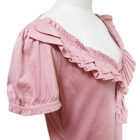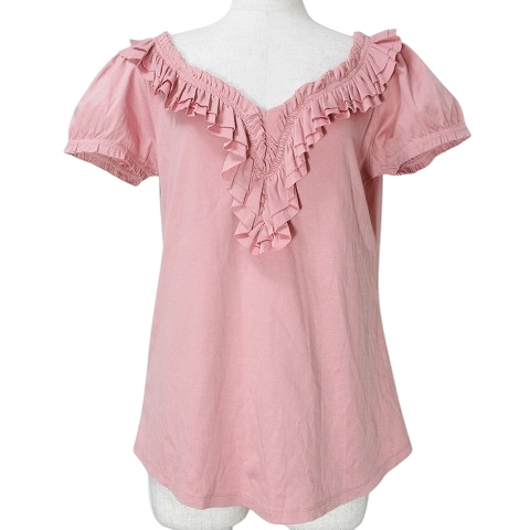 ナラカミーチェ NARA CAMICIE 美品 半袖 カットソー フリル Vネック 無地 ピンク I M相当 ■GY09 X レディース