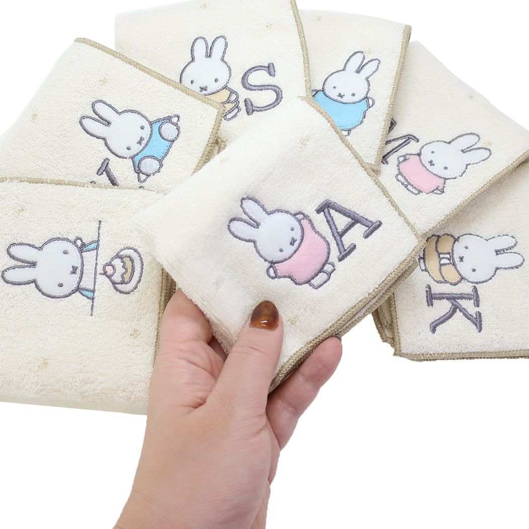 プレゼントにも最適なお洒落なイニシャルミニタオル ディックブルーナの人気絵本[miffyちゃん]グッズにまたまた可愛いnewアイテム登場こちらはギフトにもちょうどいい[イニシャルミニタオル]吸水&手触りも抜群のコットン100%で落ち着きのあるニュアンスカラーのゴールドのステッチが程よいアクセントになった上品なタオルです。かわいいキャラタオルいろいろあるのでお気に入りを揃えてくださいサイズ:約200x200mm素材:コットン