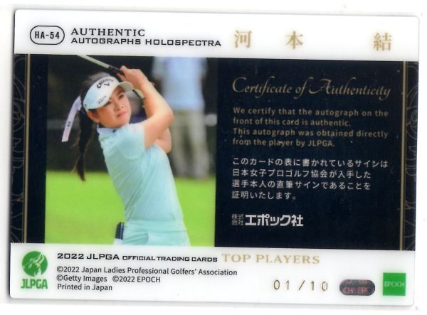 河本 結 2022 JLPGA オフィシャルトレーディングカード Top Players 超激レア! Holospectra 直筆サインカード 01/10 10枚限定 1st No.!!