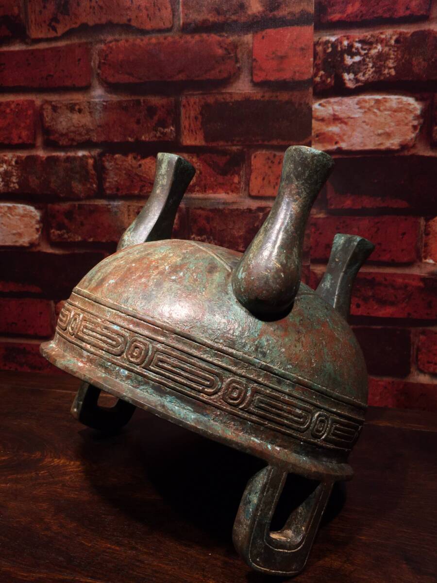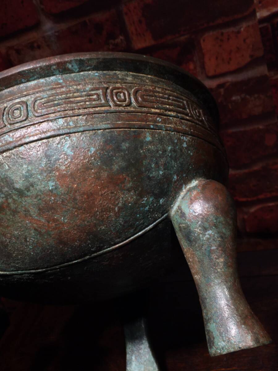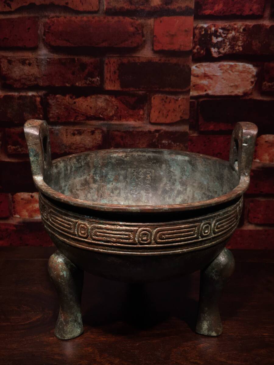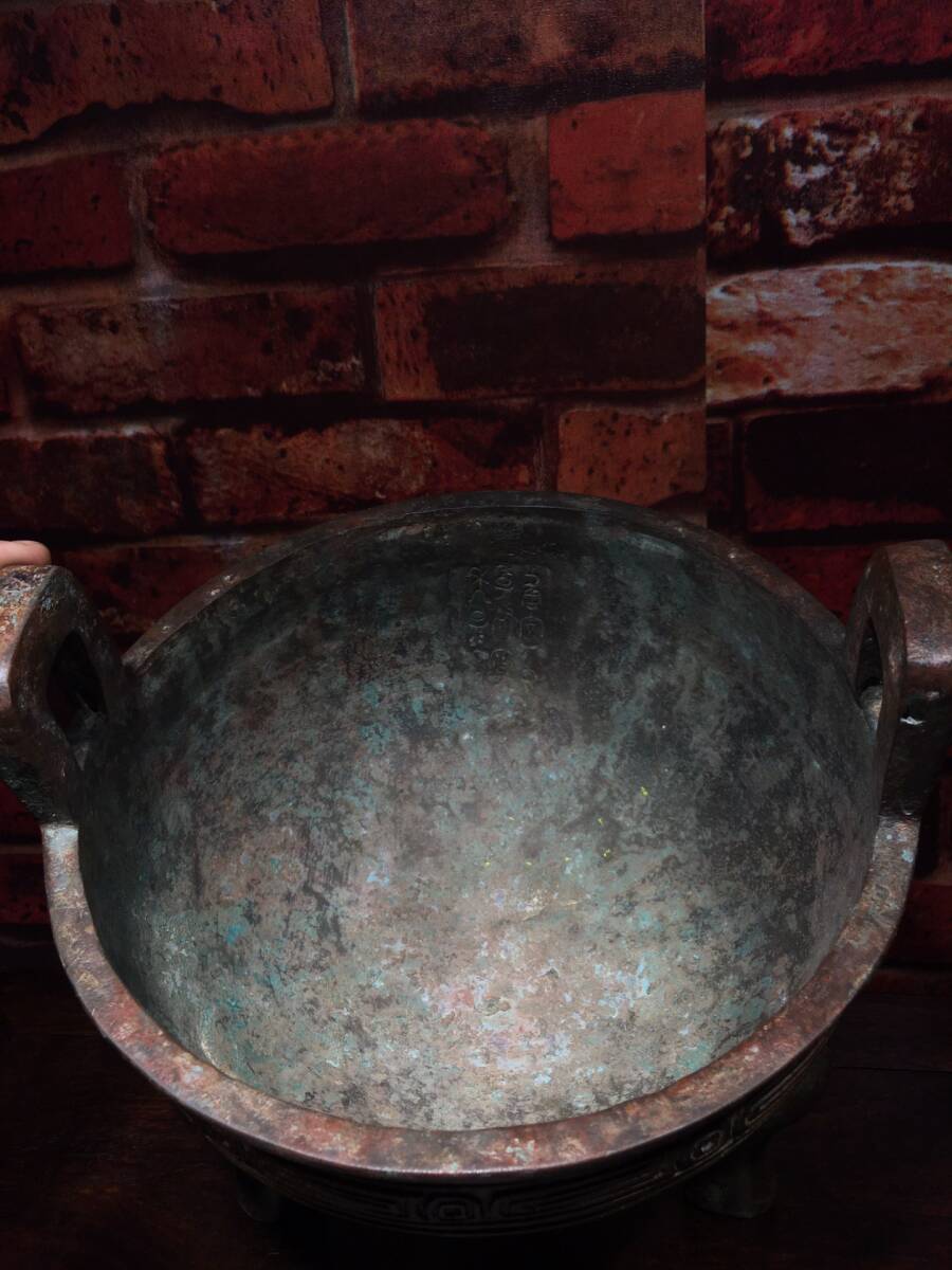 | 寸法:幅さ約23.5cm、高さ約22.8cm、重さ約3290g 状態:目立った傷や汚れなし 【インボイス登録済】 詳細:好蔵品双立耳体型半球状獣蹄形足三足口沿下飾大小相間的麟紋満銘紋魂宝紅斑緑錆銅漿まろやか | |||