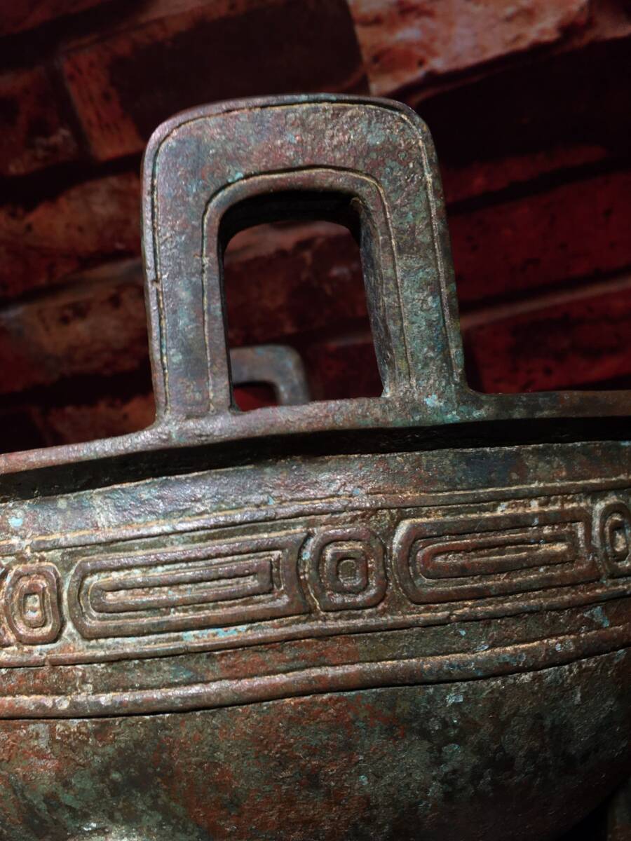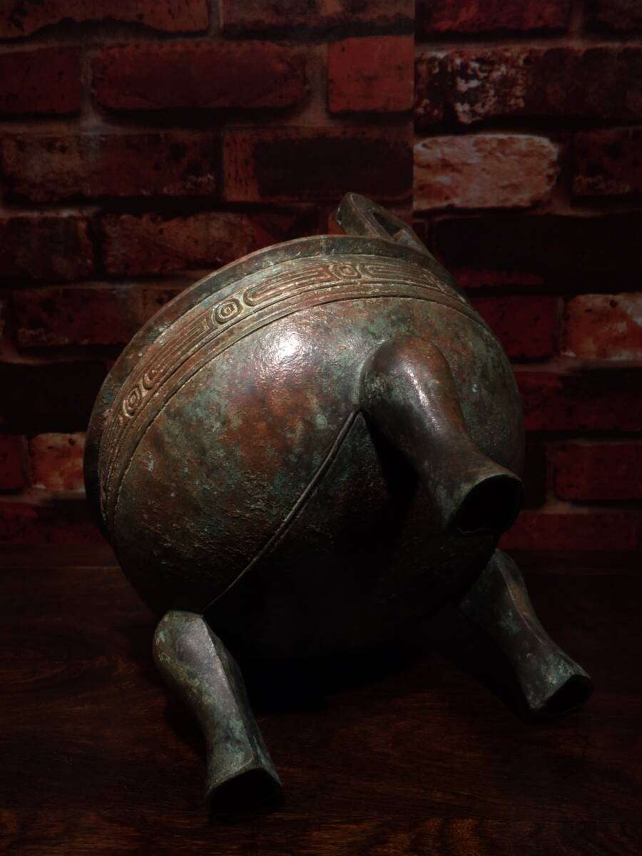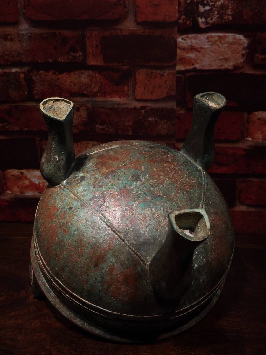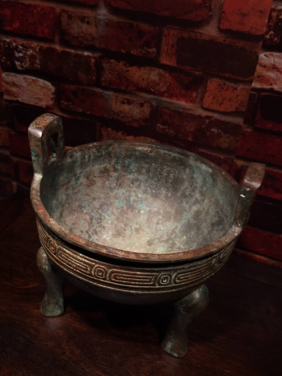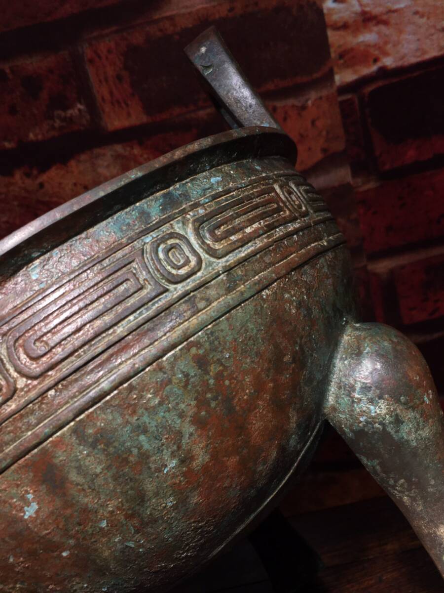 | 寸法:幅さ約23.5cm、高さ約22.8cm、重さ約3290g 状態:目立った傷や汚れなし 【インボイス登録済】 詳細:好蔵品双立耳体型半球状獣蹄形足三足口沿下飾大小相間的麟紋満銘紋魂宝紅斑緑錆銅漿まろやか | |||