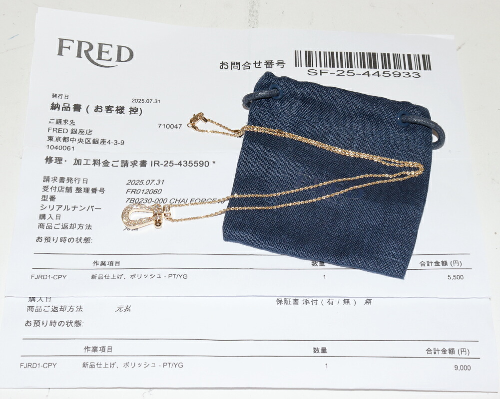 フレッド ペンダントネックレス K18YG ダイヤ54P(0.66ct) フォース10 ラージモデル 3B0209-7B0179