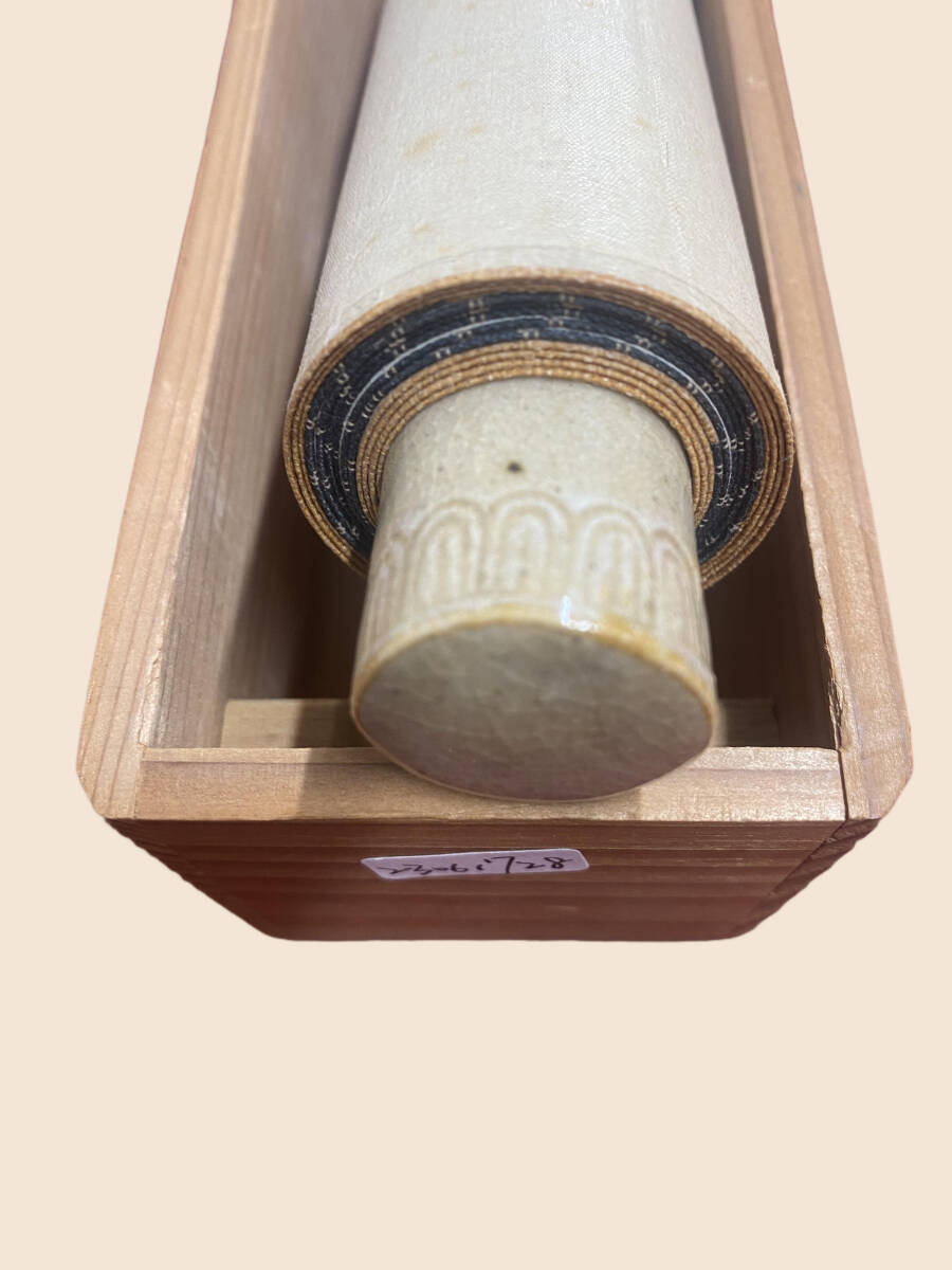 掛軸の軸先ですが、配送中の振動・気温・経年劣化等で外れてしまうことがあります。軸先の外れは、返品の対象にはなりません。大変お手数ですが、お客様ご自身での修復をお願い致します。