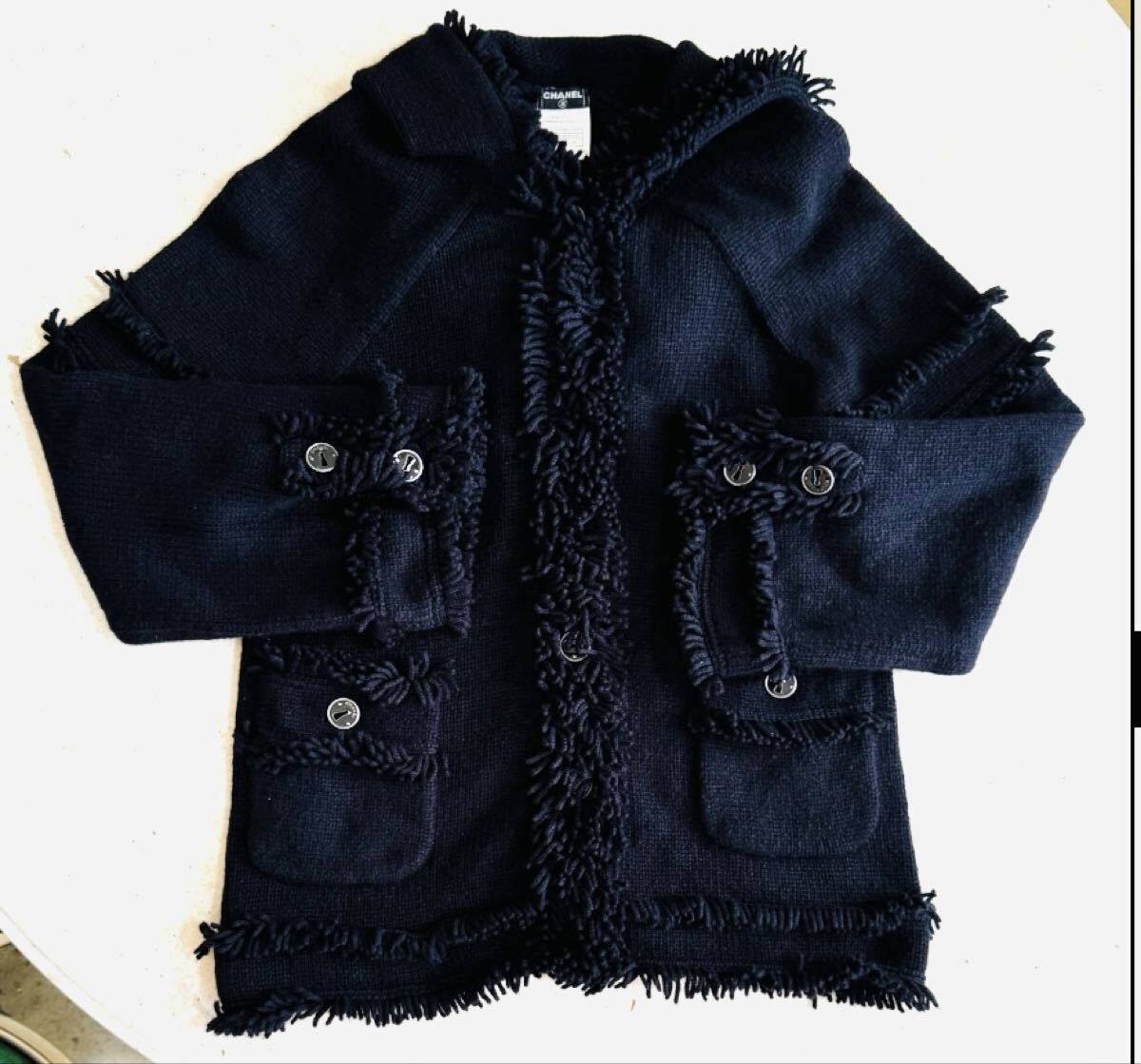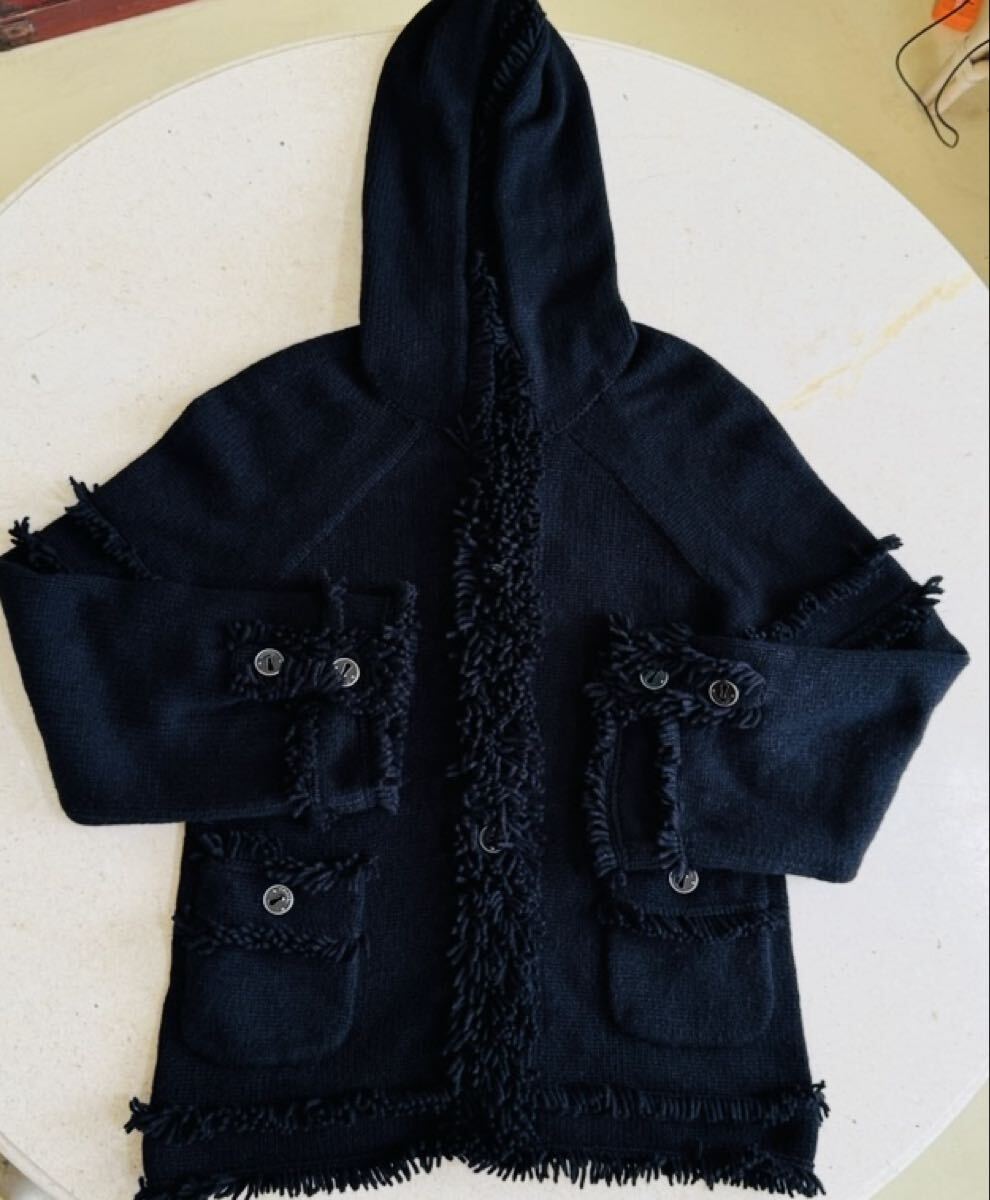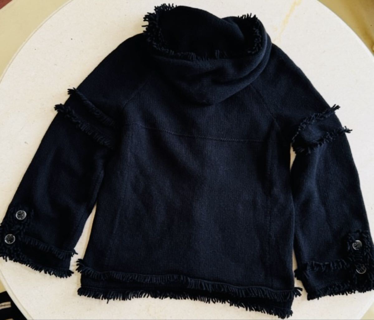 一度使用しております。フリンジ、鍵穴ボタンがとても可愛いフード付きジャケットになります。写真で状態はご確認くださいませ。