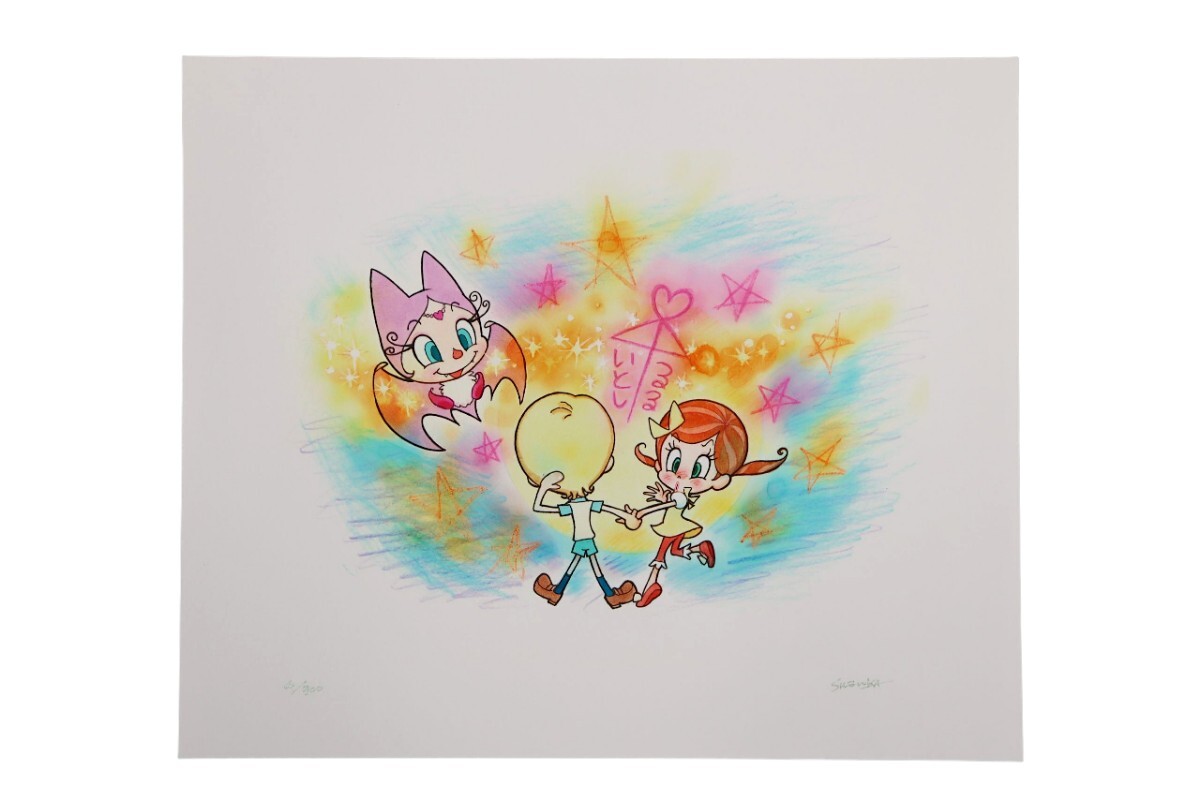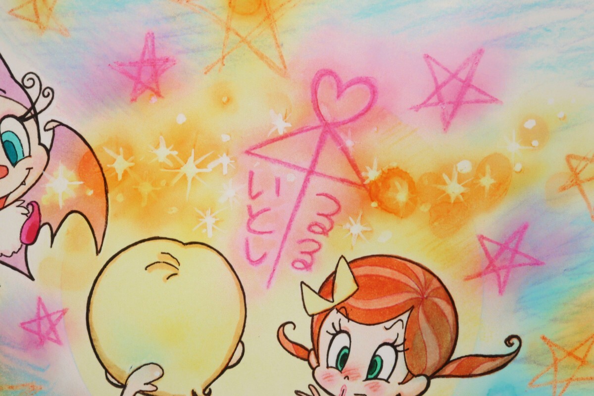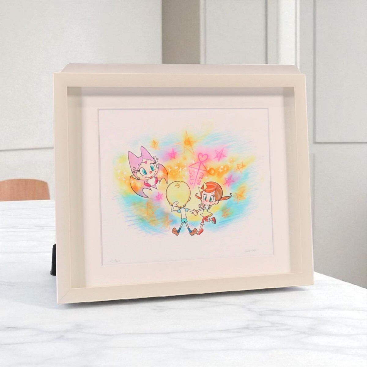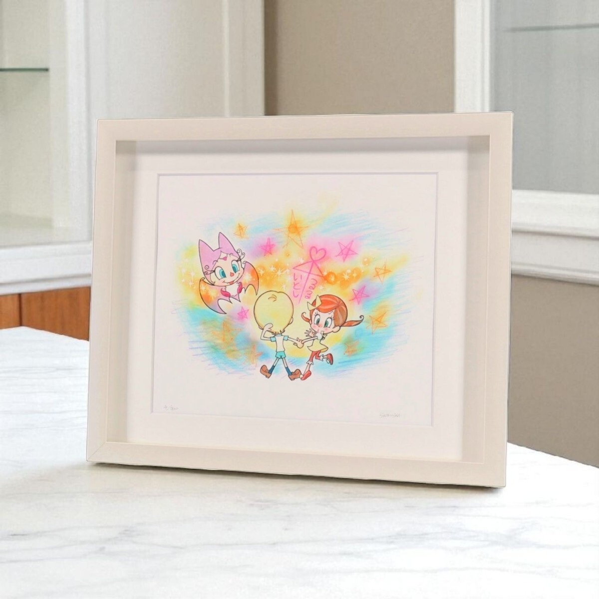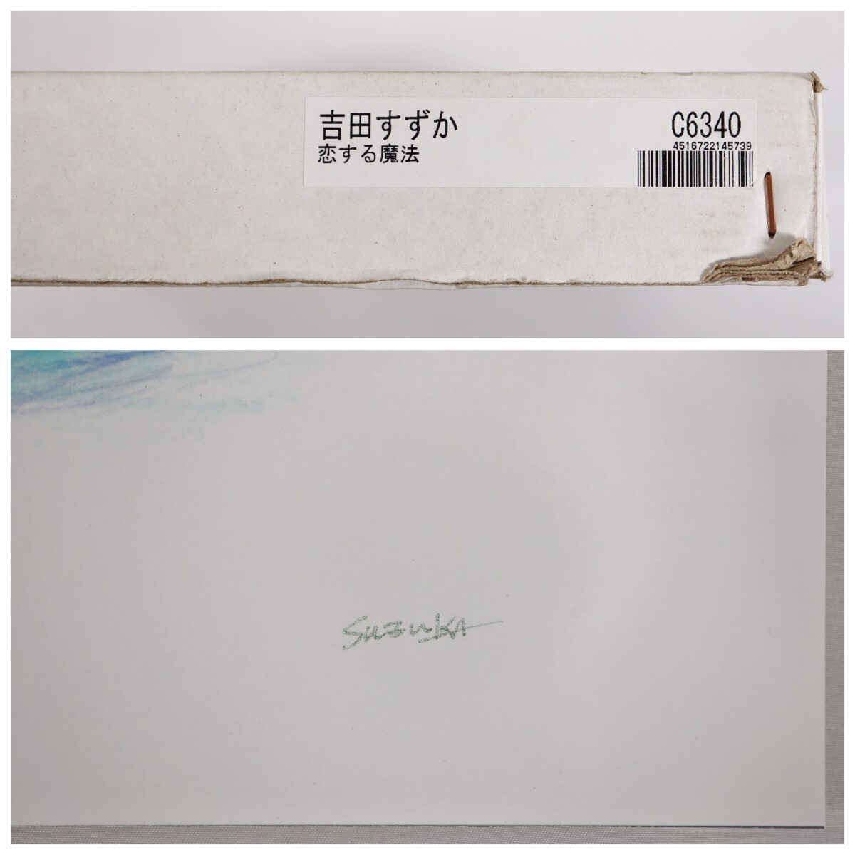 真作 吉田すずか ジクレー「恋する魔法」窓寸 31×26cm 東京出身 吉田竜夫の長女 あくびのご主人様のるるちゃんが片思いのいとしくん 11326