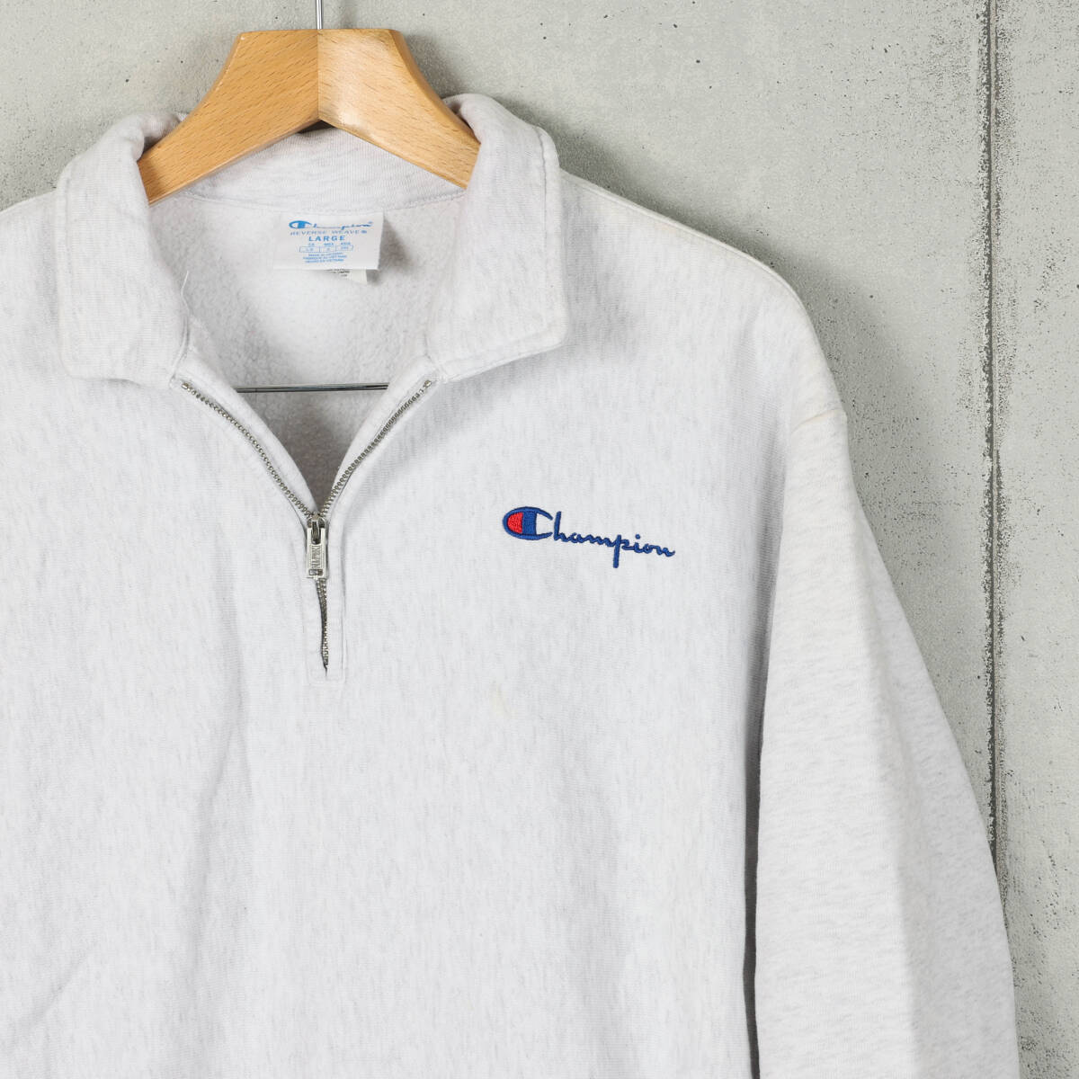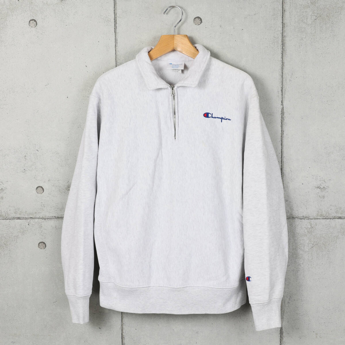 【ブランド】 Champion / チャンピオン 【アイテム】 ベトナム製 リバースウィーブ ハーフジップ スウェット 【商品説明】 アメリカで購入しました、チャンピオンのベトナム製のリバースウィーブ ハーフジップスウェットになります。 【カラー】 シルバーグレー 【コンディション】 使用に伴う色落ちや擦れ、細かな毛玉などがあります。 【サイズ】 サイズ:L 身幅:61cm 肩幅:54cm 着丈:66cm 袖丈:65cm | |||