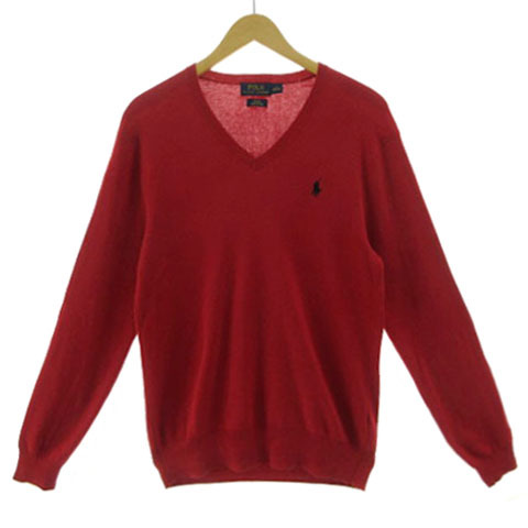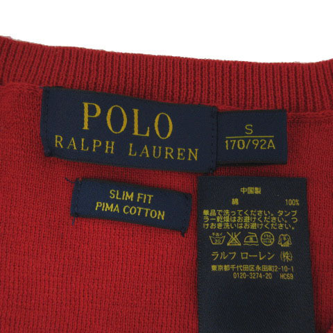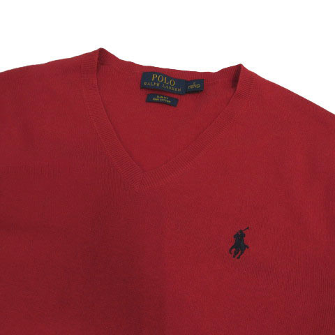 ポロ ラルフローレン POLO RALPH LAUREN SLIM FIT Vネックコットンニット 0200011603 ポニー刺繍 長袖 レッド 赤 S メンズ