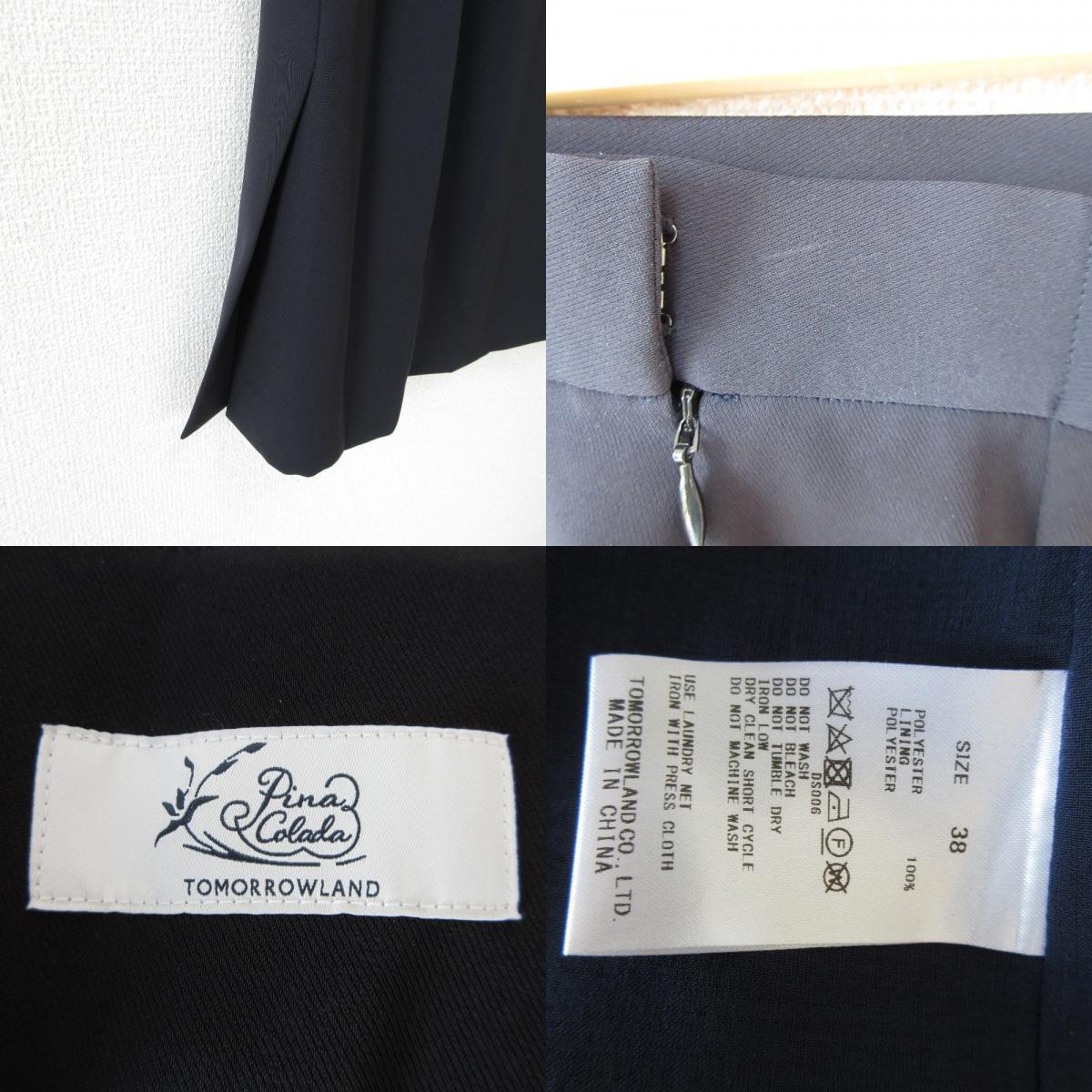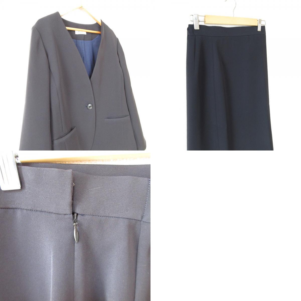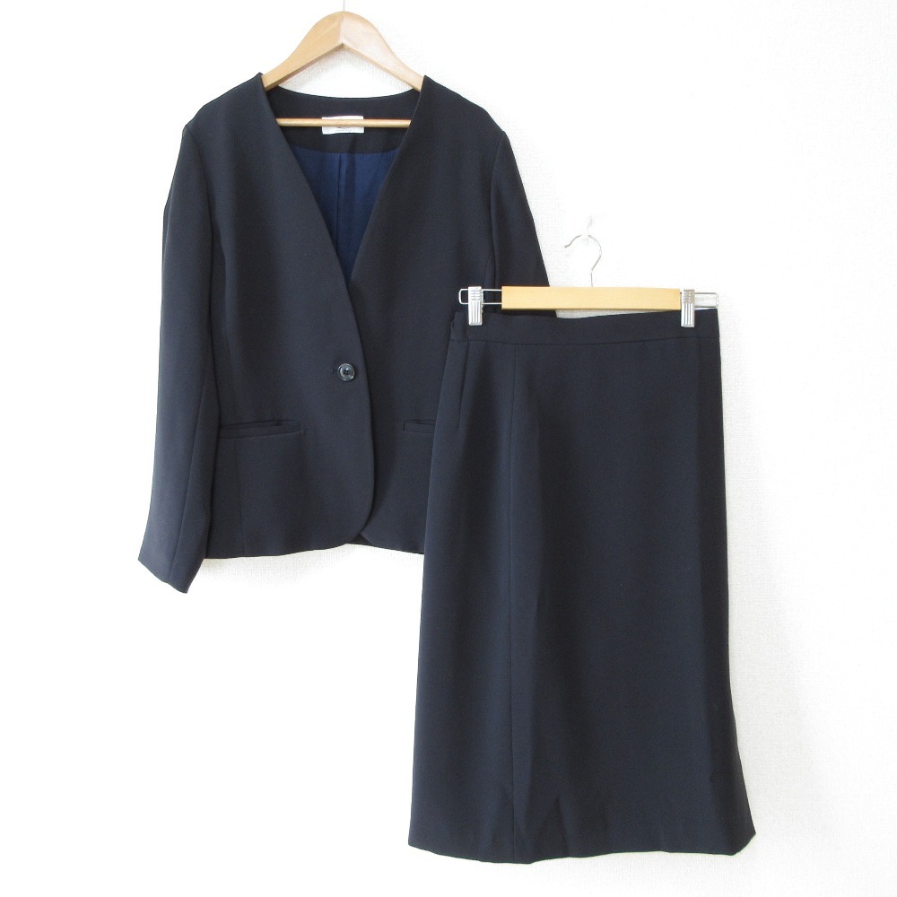 商品名:22SS TOMORROWLAND トゥモローランド Pina Colada ノーカラージャケット スカート スーツ セットアップ 38 ネイビー