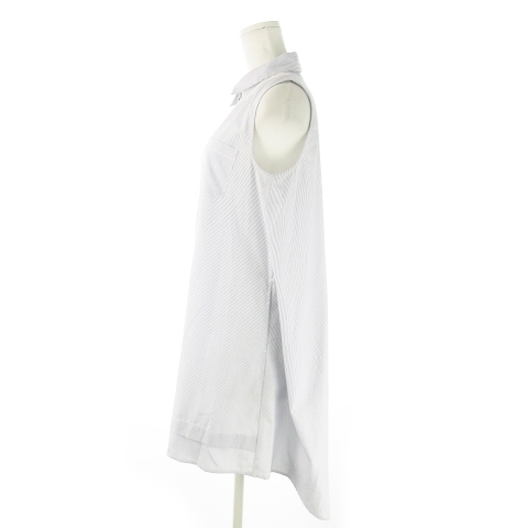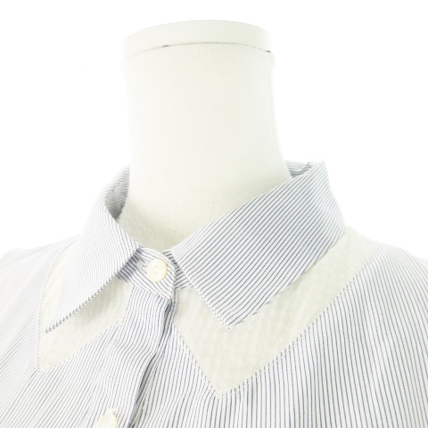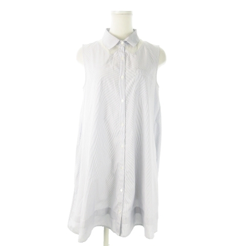 ハレ HARE シャツワンピース ひざ丈 ノースリーブ 切替 チュール ストライプ 総柄 F 青 ブルー /AO9 レディース