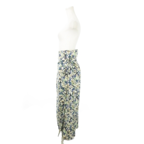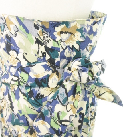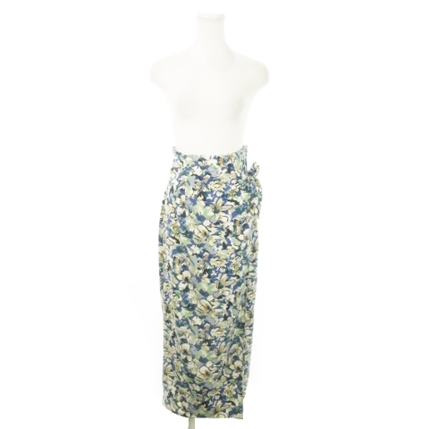 ジャンポールゴルチエ ファム Jean Paul GAULTIER FEMME ロングスカート ラップ タイト ハイウエスト リボン 花柄 総柄 40 S 青