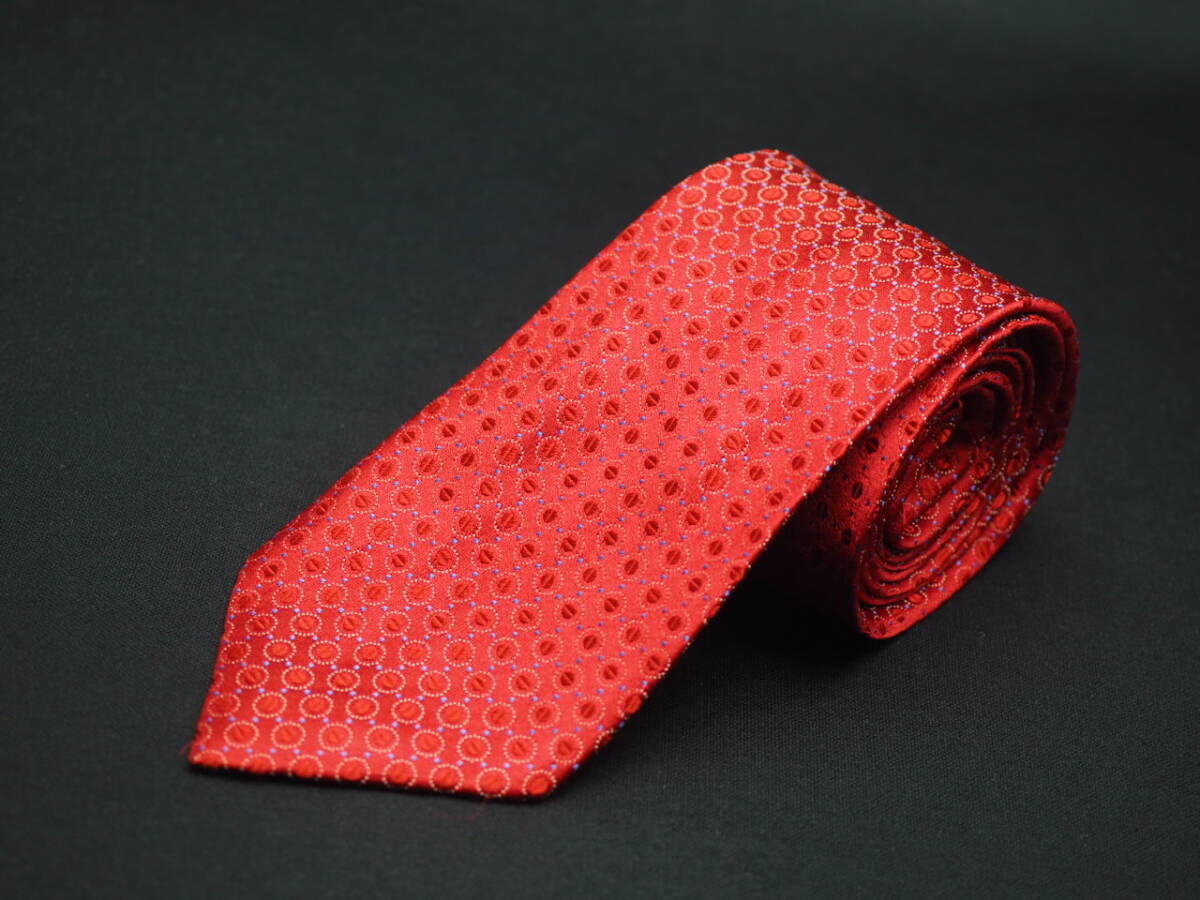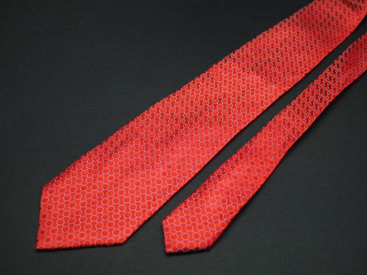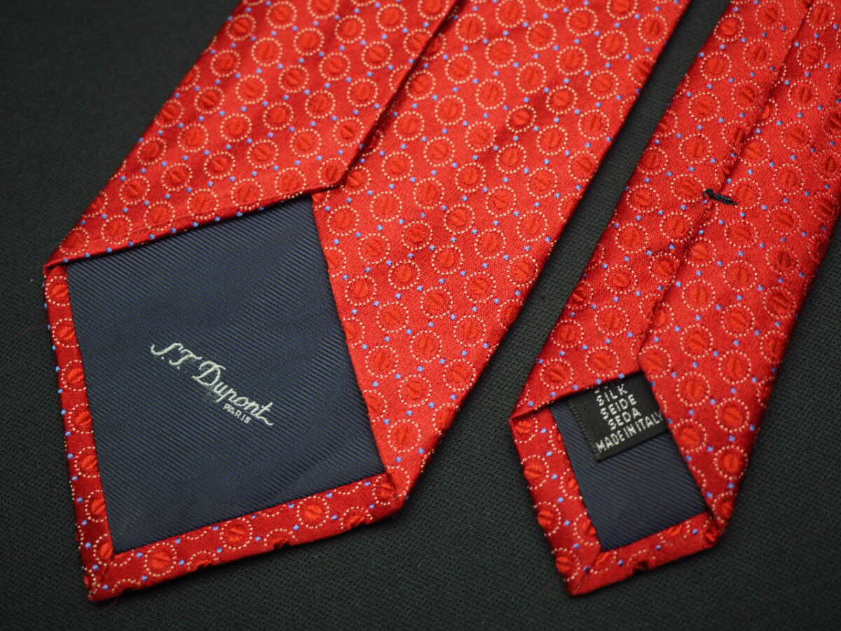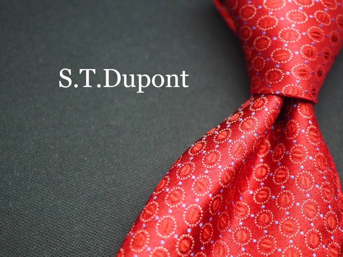 美品【S.T.Dupont デュポン】 F1737 赤系 SILK ブランド ネクタイ 古着 良品