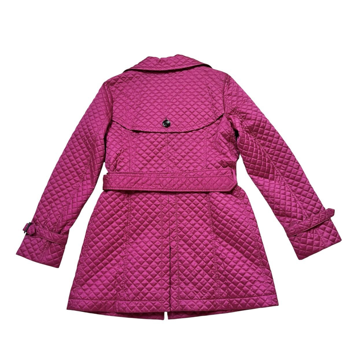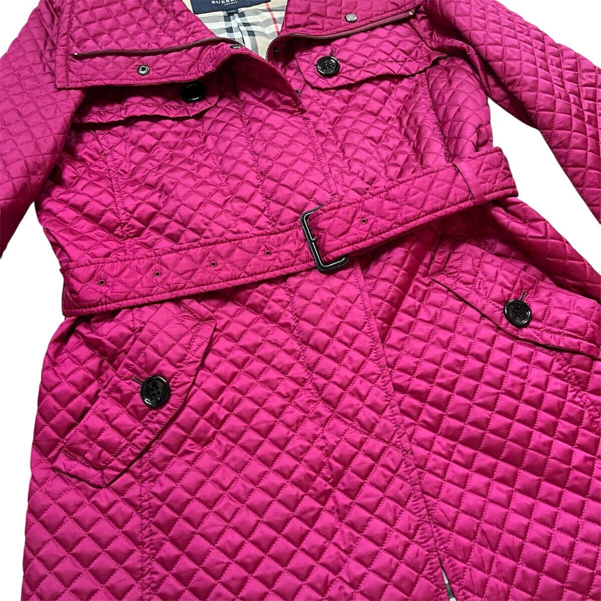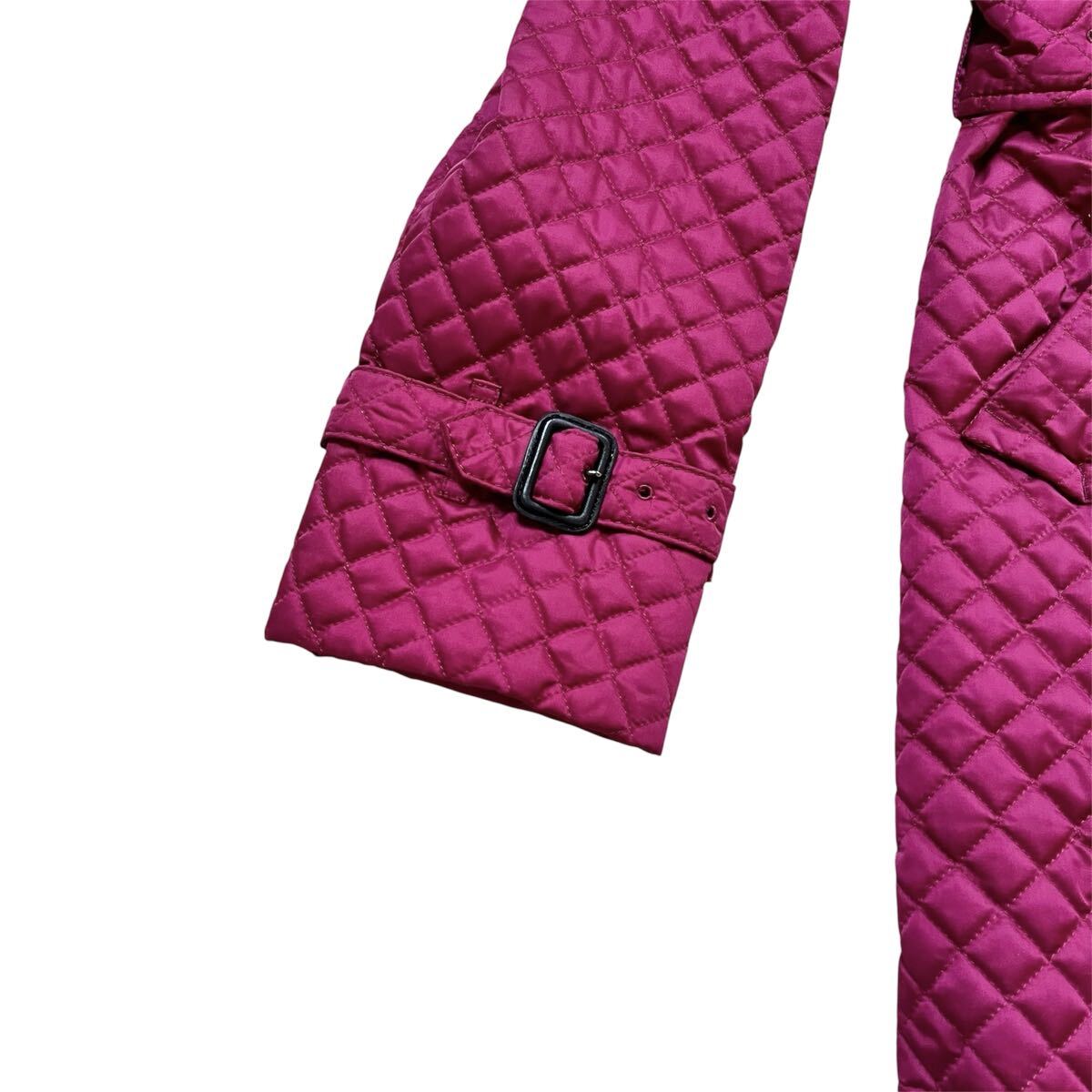 バーバリーロンドンBURBERRY LONDONパープル 紫 マゼンタ キルティング トレンチ ノバチェック レディース ベルト付コートサイズ42【XL】