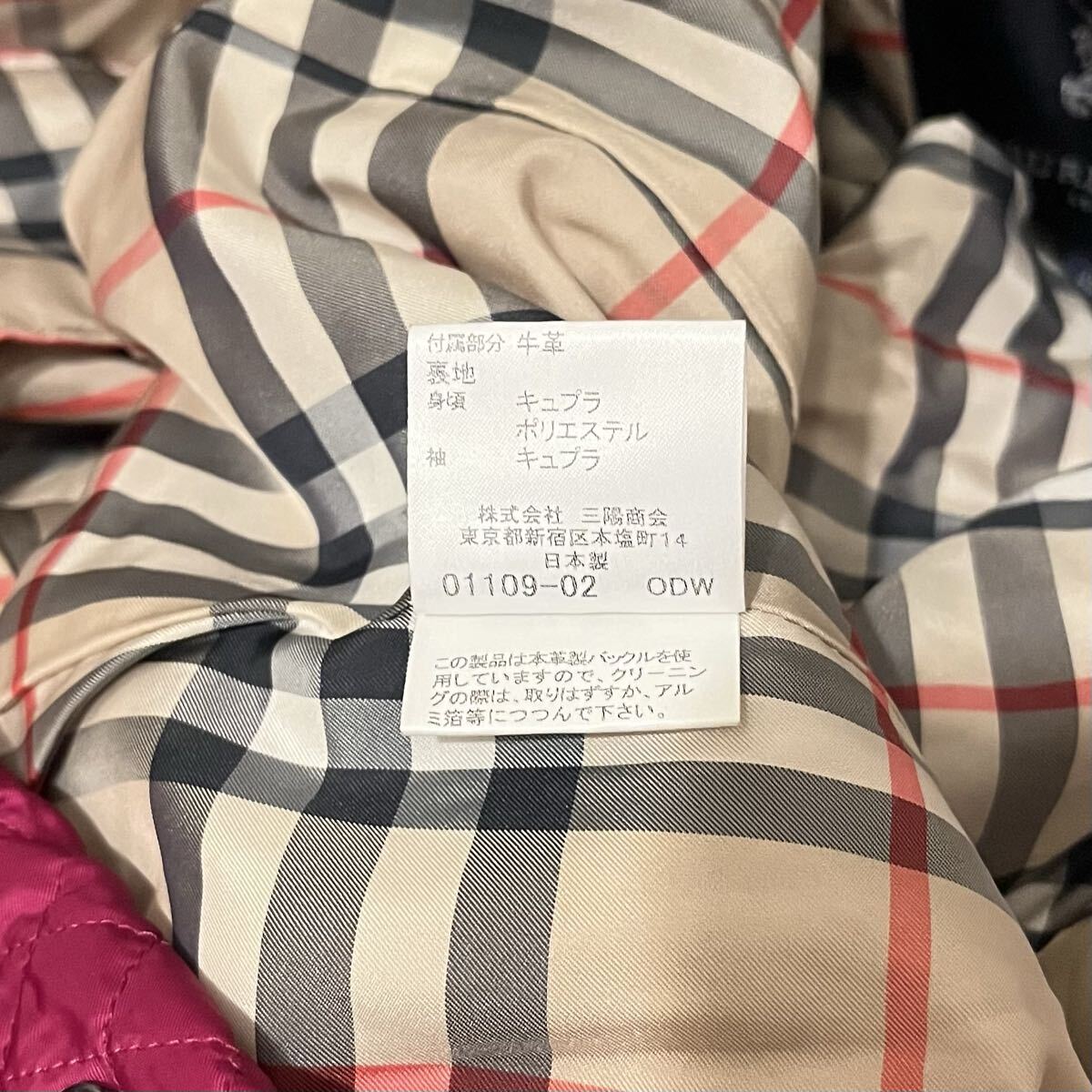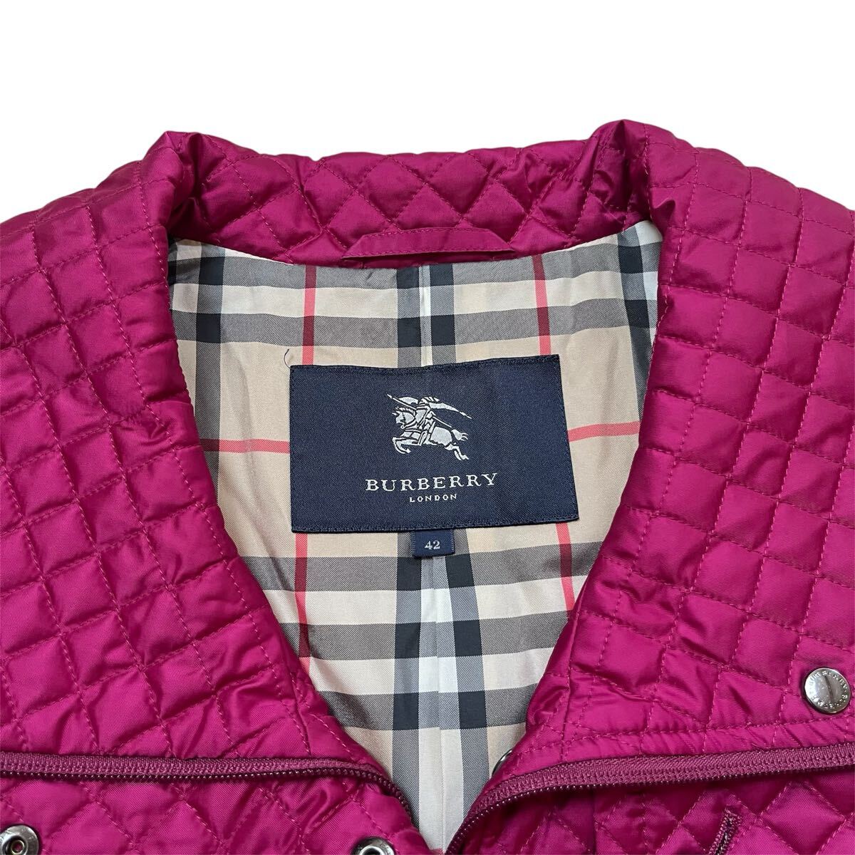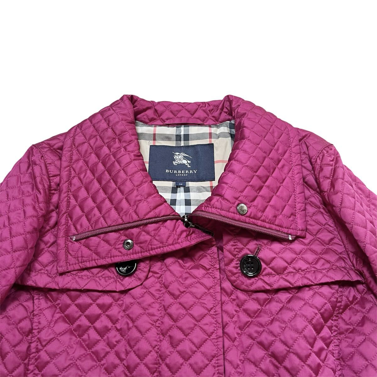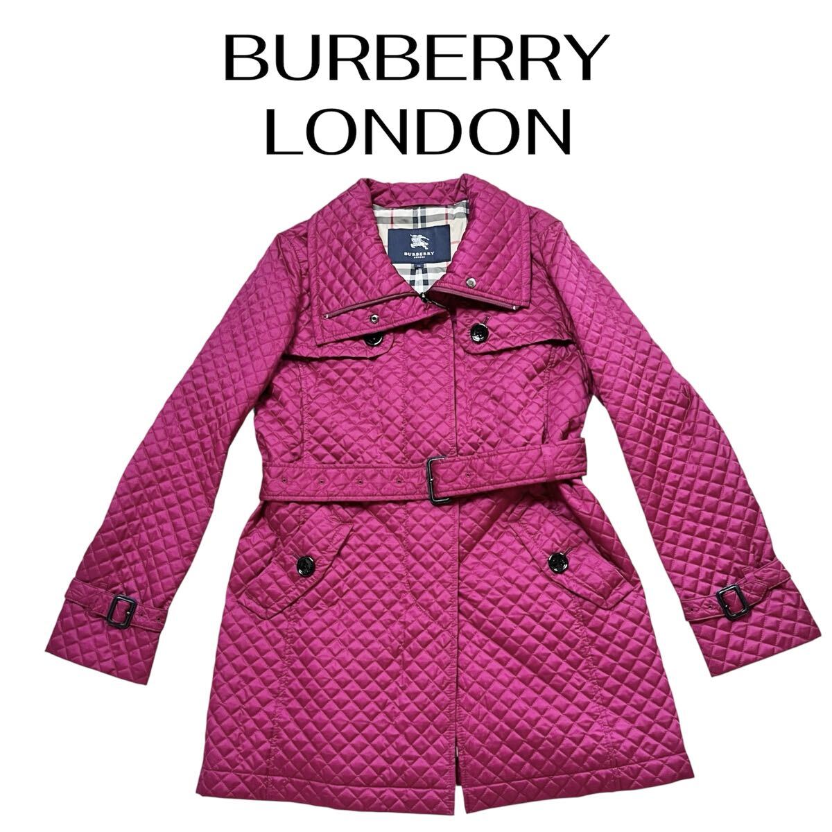 バーバリーロンドンBURBERRY LONDONパープル 紫 マゼンタ キルティング トレンチ ノバチェック レディース ベルト付コートサイズ42【XL】