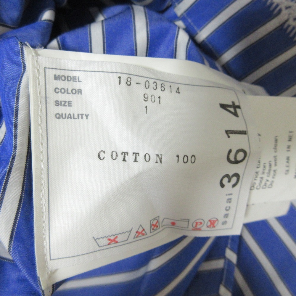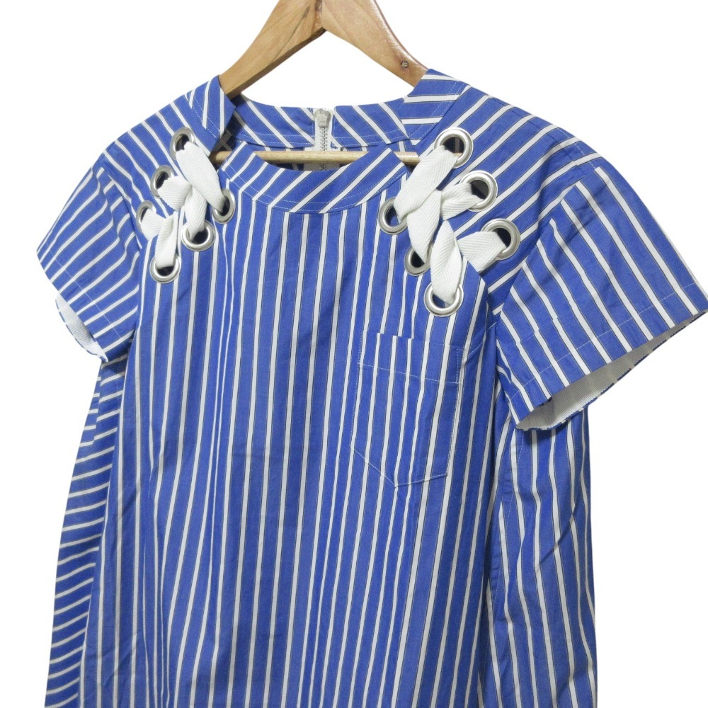 商品名:sacai サカイ ストライプ 半袖 膝丈 ポプリン ドレス ワンピース 18-03614 1 ブルー×ホワイト
