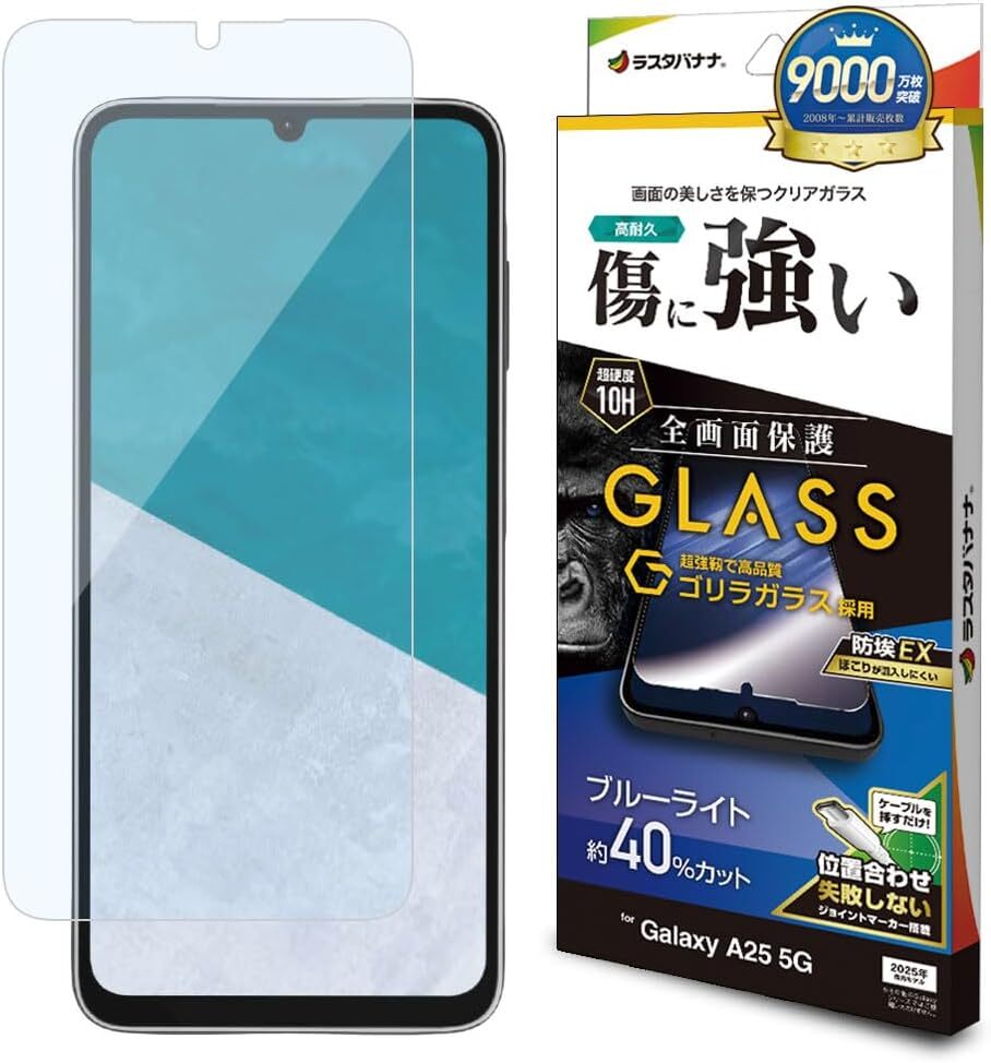 ラスタバナナ Galaxy A25 5G SC-53F SCG33 専用ガラスフィルム 全面保護 ブルーライト約40%カット ゴリラガラス 硬度10H GGE4797GA25