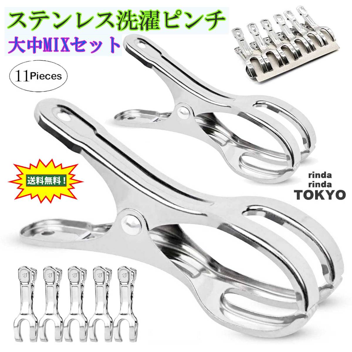 洗濯ばさみ 洗濯バサミ 洗濯 ピンチ 大中セット 手作業加工済【大×5 中×6】 ステンレス 竿 洗濯ピンチ 竿ばさみ 洗濯 ばさみ 洗濯 バサミ