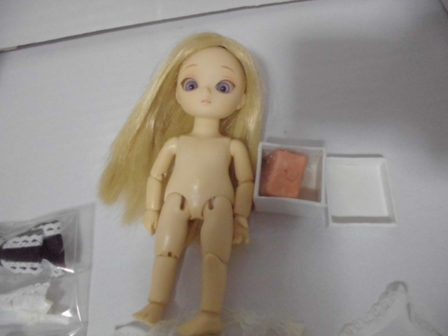 当方セカンドオーナーになります。ゴムテンション弱いです。アイ、まだ輸送時用の固定金具のままです。ドールの脇にあるちいさな箱に入っているのが、固定させる粘土のようなものですが、がちがちにかたまってます!髪に乱れがあります。目立った汚れはございません。
