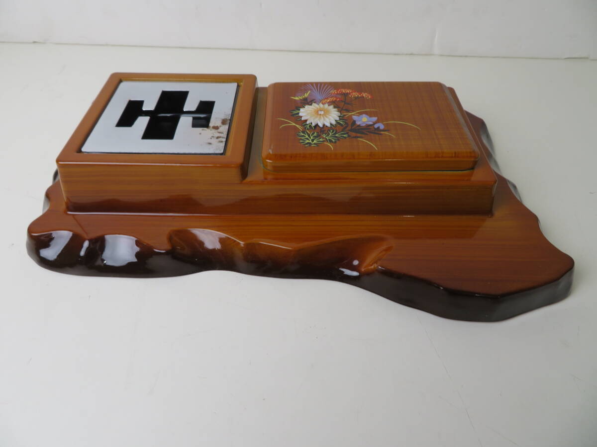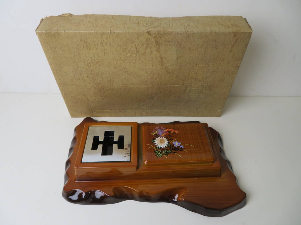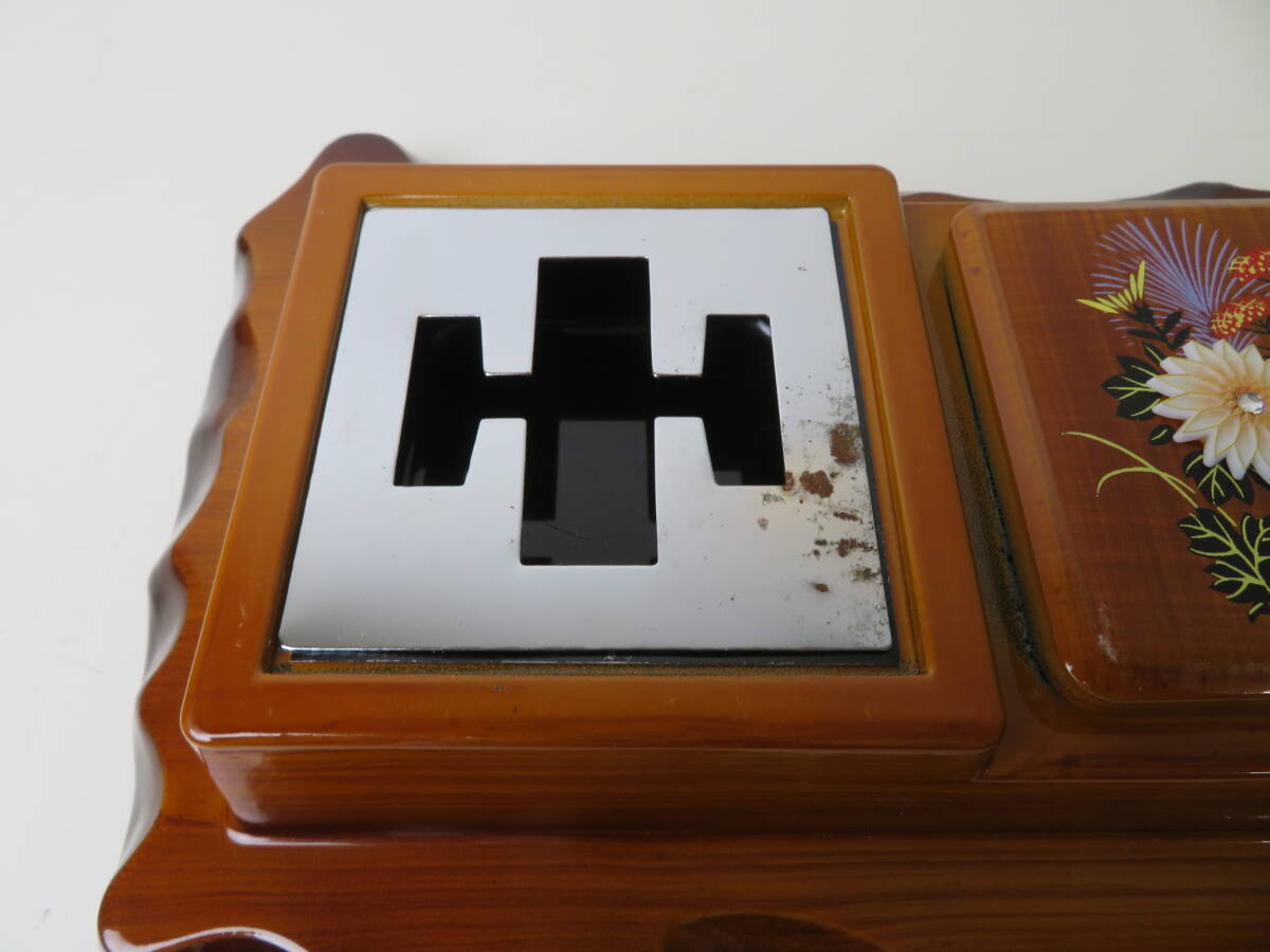 ▽【未使用・保管品】灰皿 花影 文箱 花柄 昭和レトロ ※灰皿部分にサビあり、記名あり