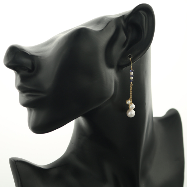 パールが揺らめくチェーンデザインのピアスジュエリー。耳元を上品に演出してくれますよ。 |
