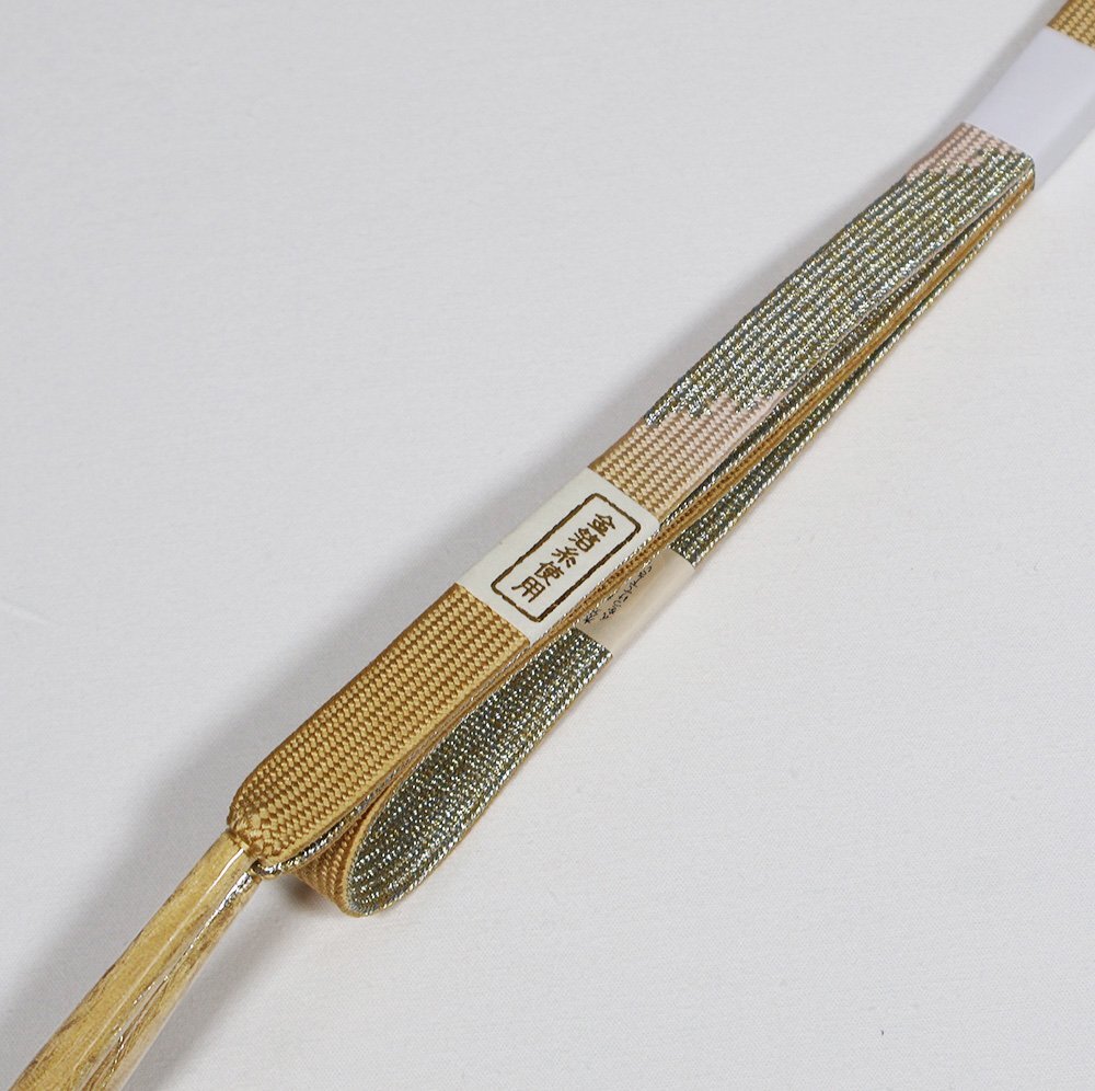 訪問着用 帯締め 三分金 帯締め 組紐 平 ベージュ 暈しに金の編み 新品 |