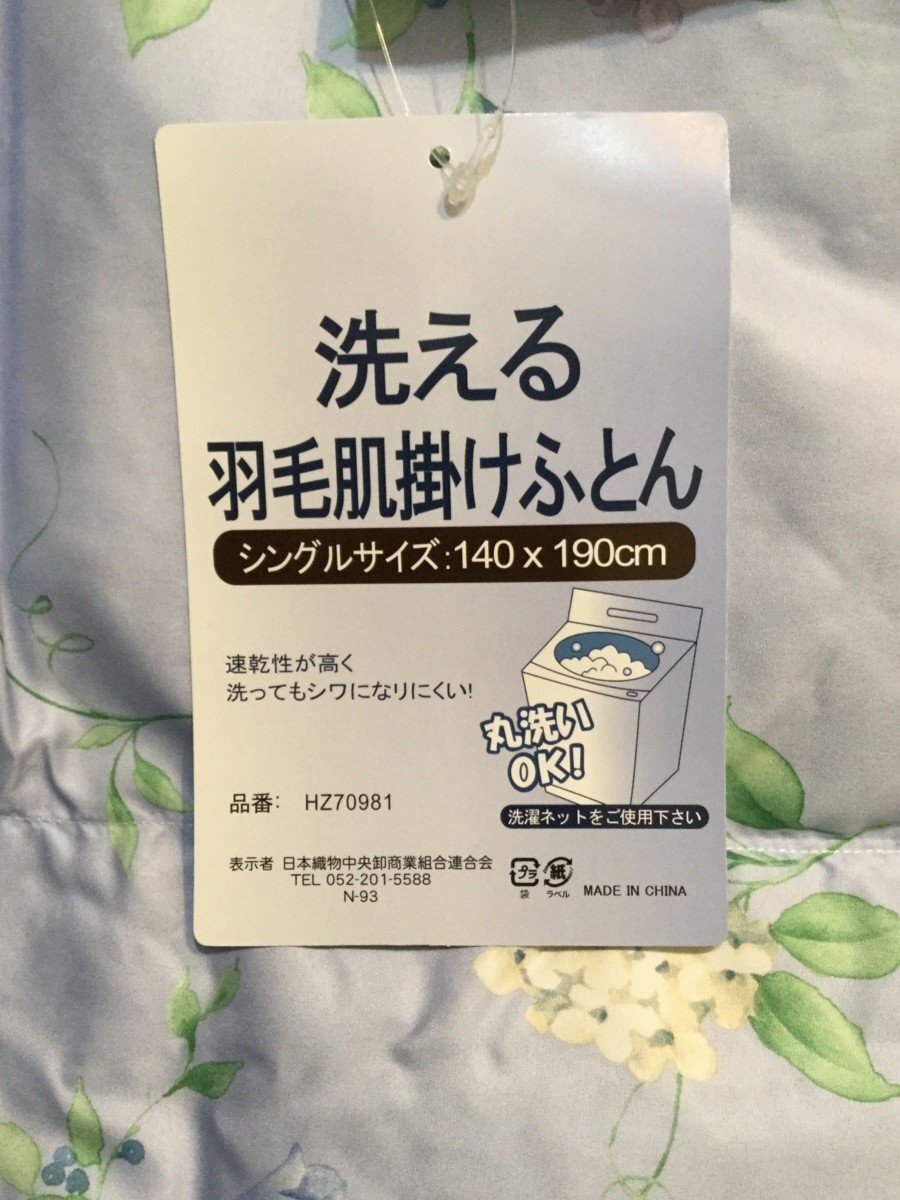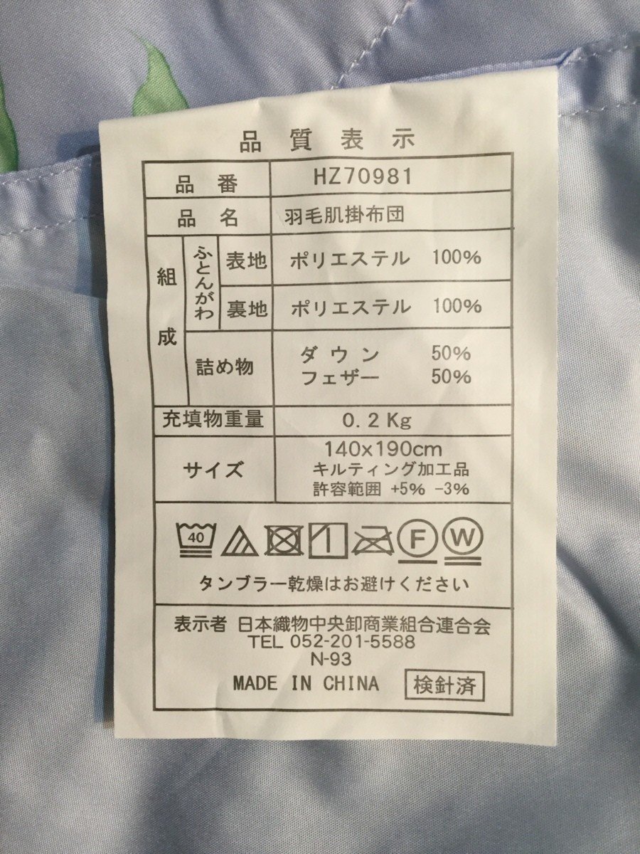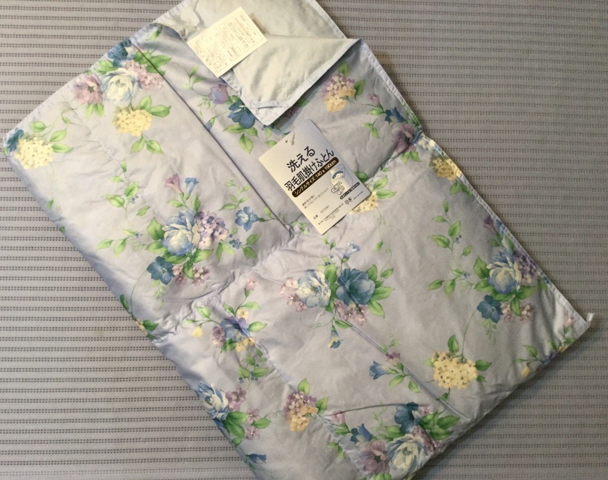 洗える!!◆羽毛肌掛ふとん・ダウンケット◆シングルサイズ・140x190cm・ブルー花柄◎丸洗いOK!!(洗濯ネット使用)速乾性が高く、洗ってもシワになりにくい♪◎羽毛肌布団で140x190㎝のサイズがすくなくなりました。小柄な年配の方や、子供さんに便利です♪当店平日税込み価格5,980円を大特価!!ラスト1点になりました税込3,999円スタ~ト~税込4,000円即決!でのご提供です♪◆サイズ・素材について ◆★ふとんがわ 表地・裏地 ポリエステル100%★詰めもの ダウン50% フェザー50%★詰めもの重量 0.2kg※送料、お安くお届けいたしたく、コンパクトに致します。ご了承くださいませ。【宅配便送料】四国・中国・関西・ 北陸・東海 810円九州・ 信越・関東 900円東北 1000円北海道 1620円沖縄 1260円