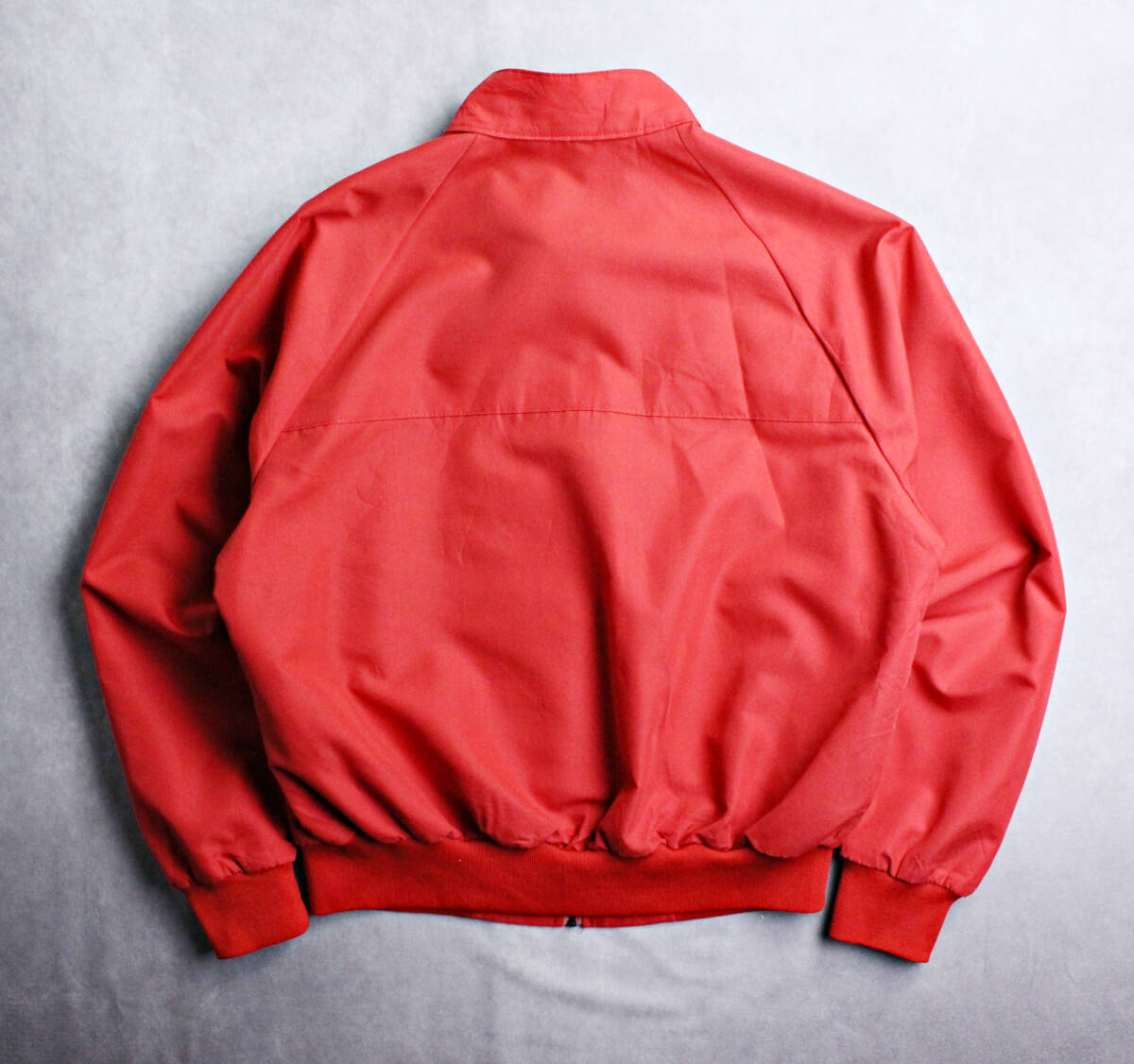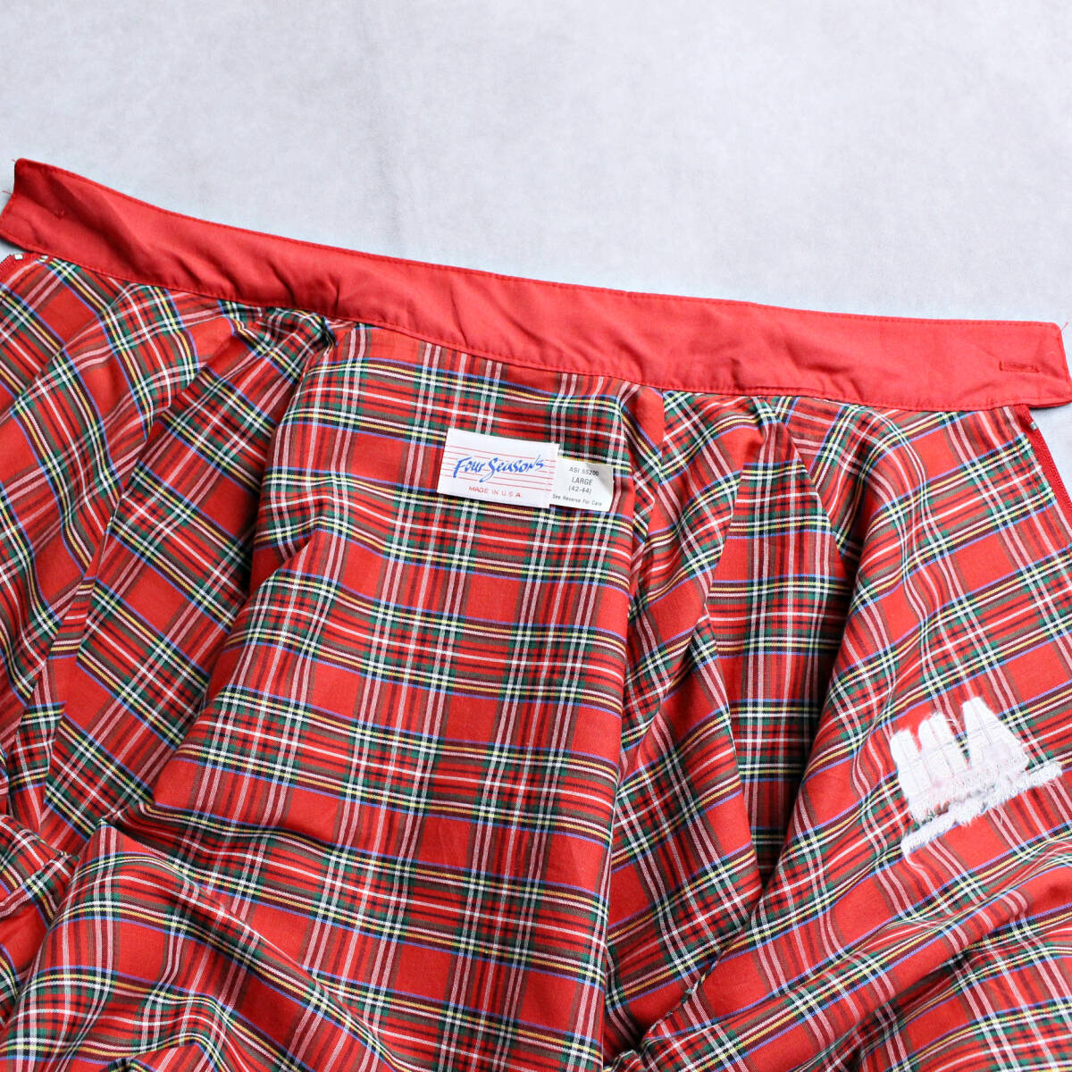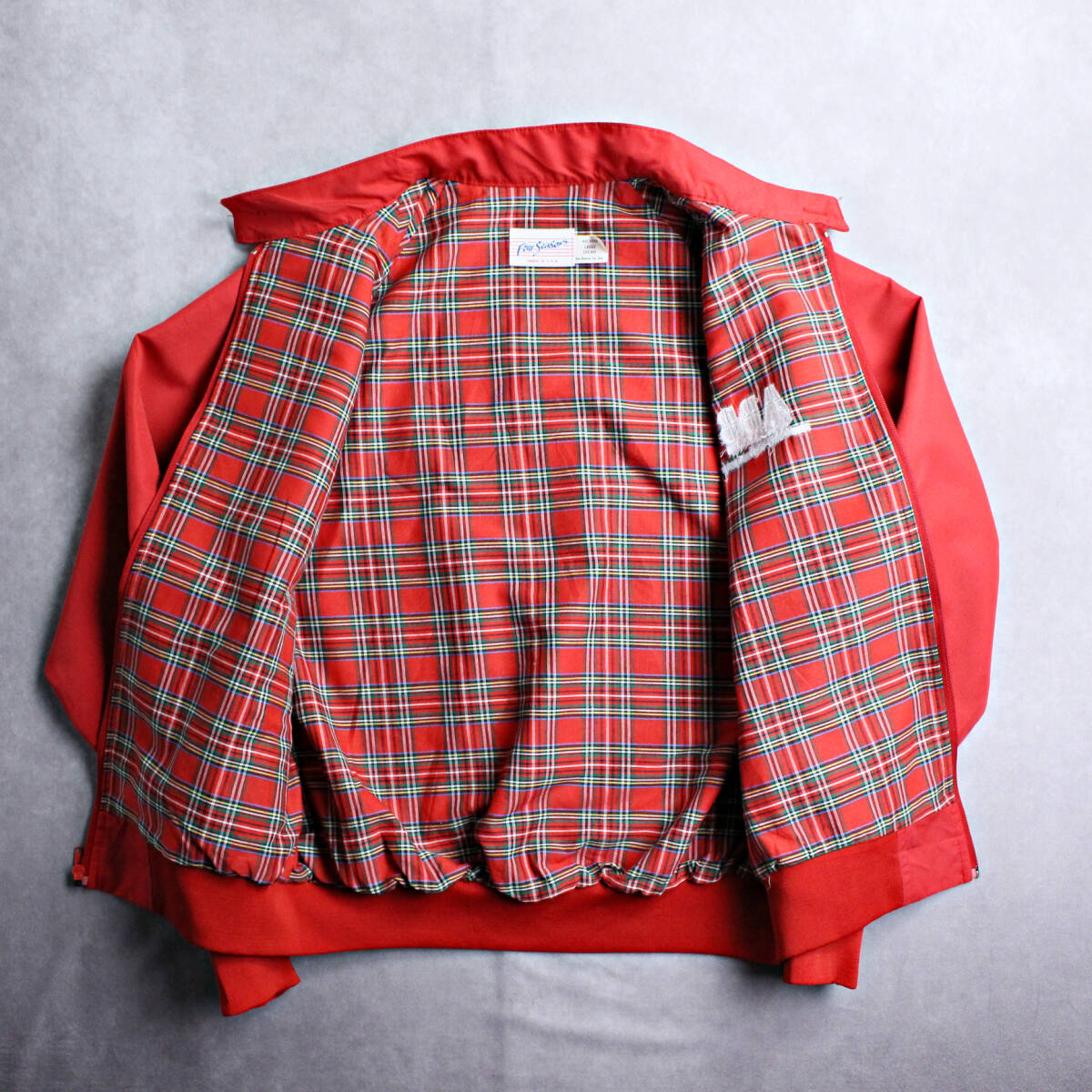 90s アメリカ製 ハリントンジャケット 赤 裏地チェック Lサイズ 企業ロゴ ジャンパーブルゾン スウィングトップ アイビー トラッド