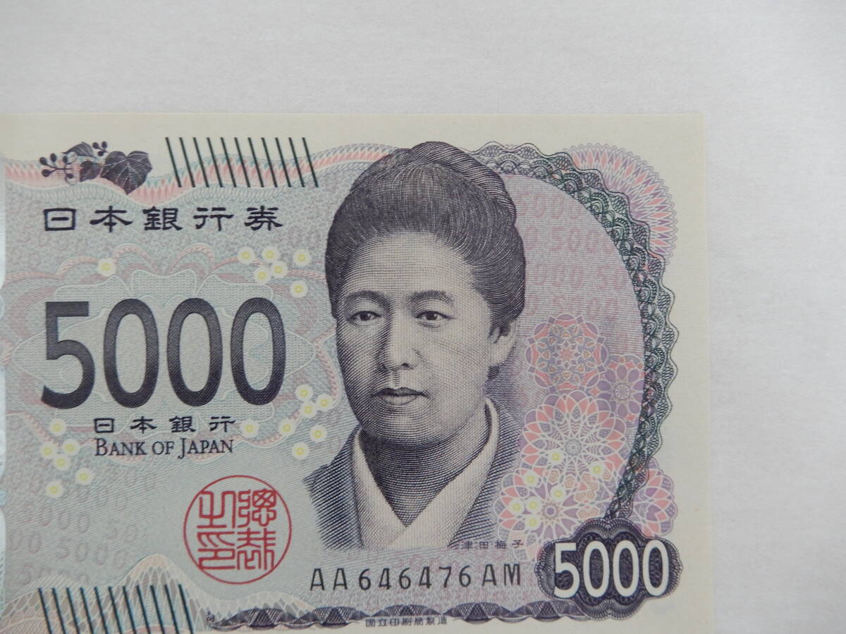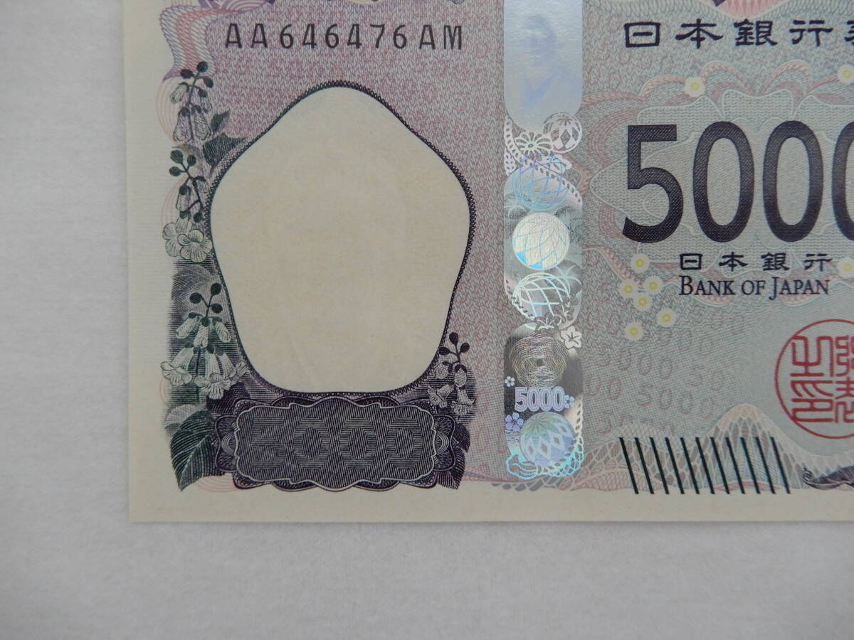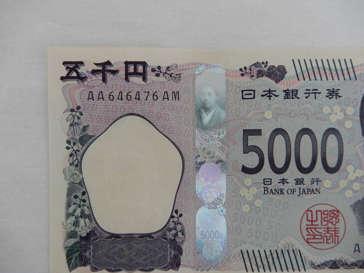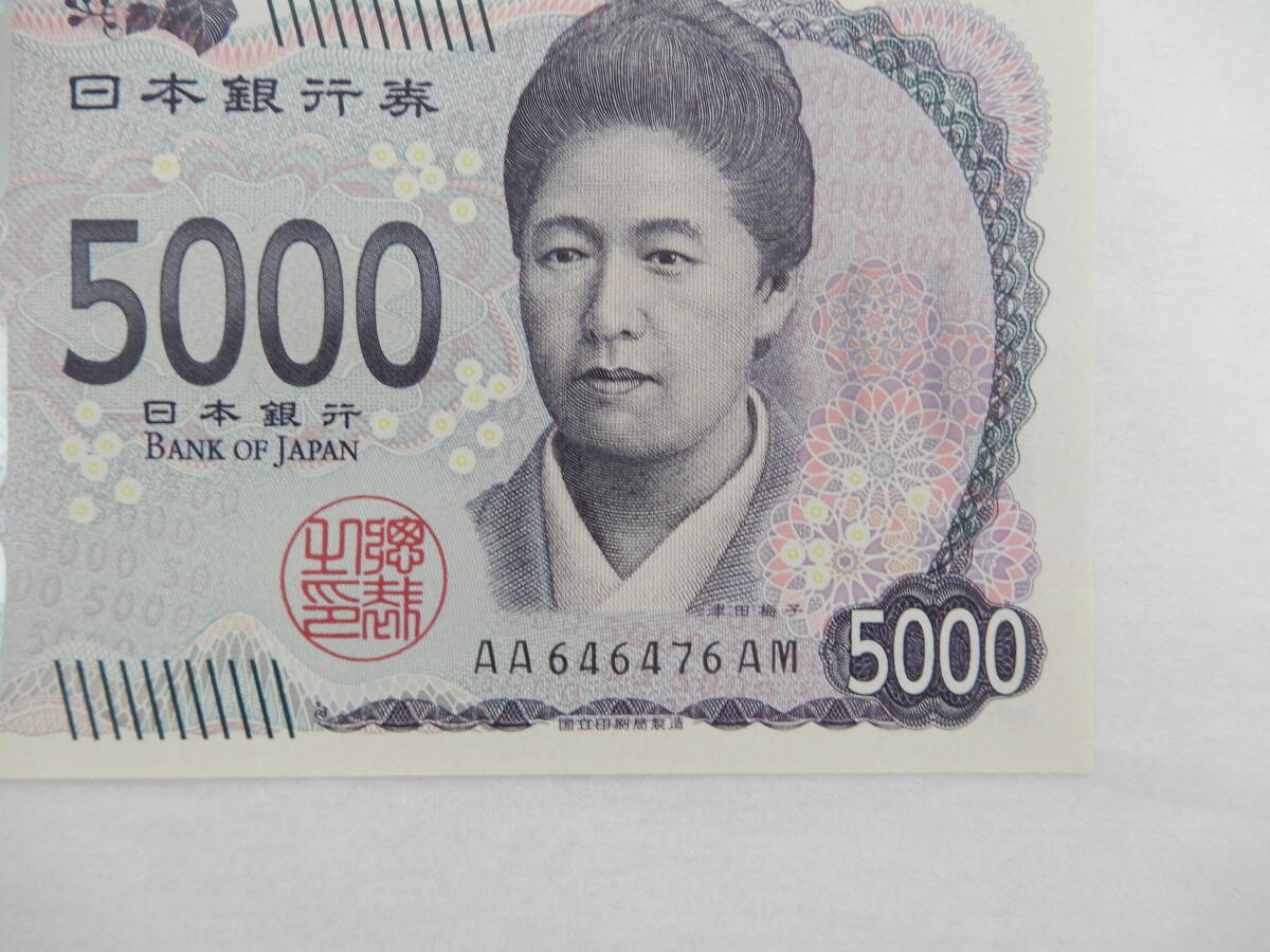 津田梅子 トリプルA AAA券 ピン札 1枚 AA-AM AA646476AM 5000円札 五千円札 AA券 新紙幣