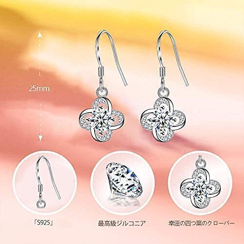 V LORDWEY ピアス レディース フック シルバー925 最高級ジルコニア揺れる 四つ葉のクローバー金属アレルギー対応 プラ