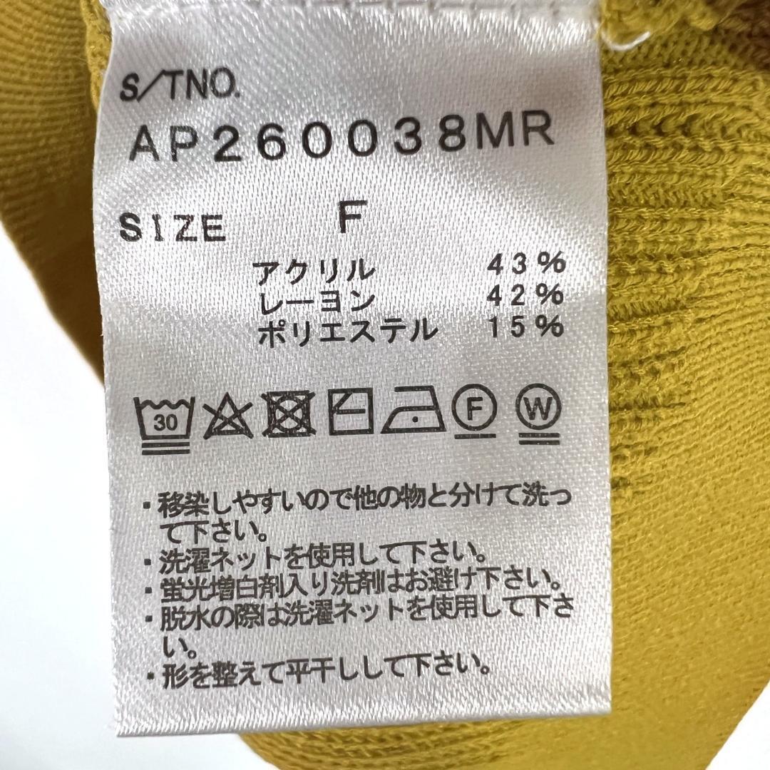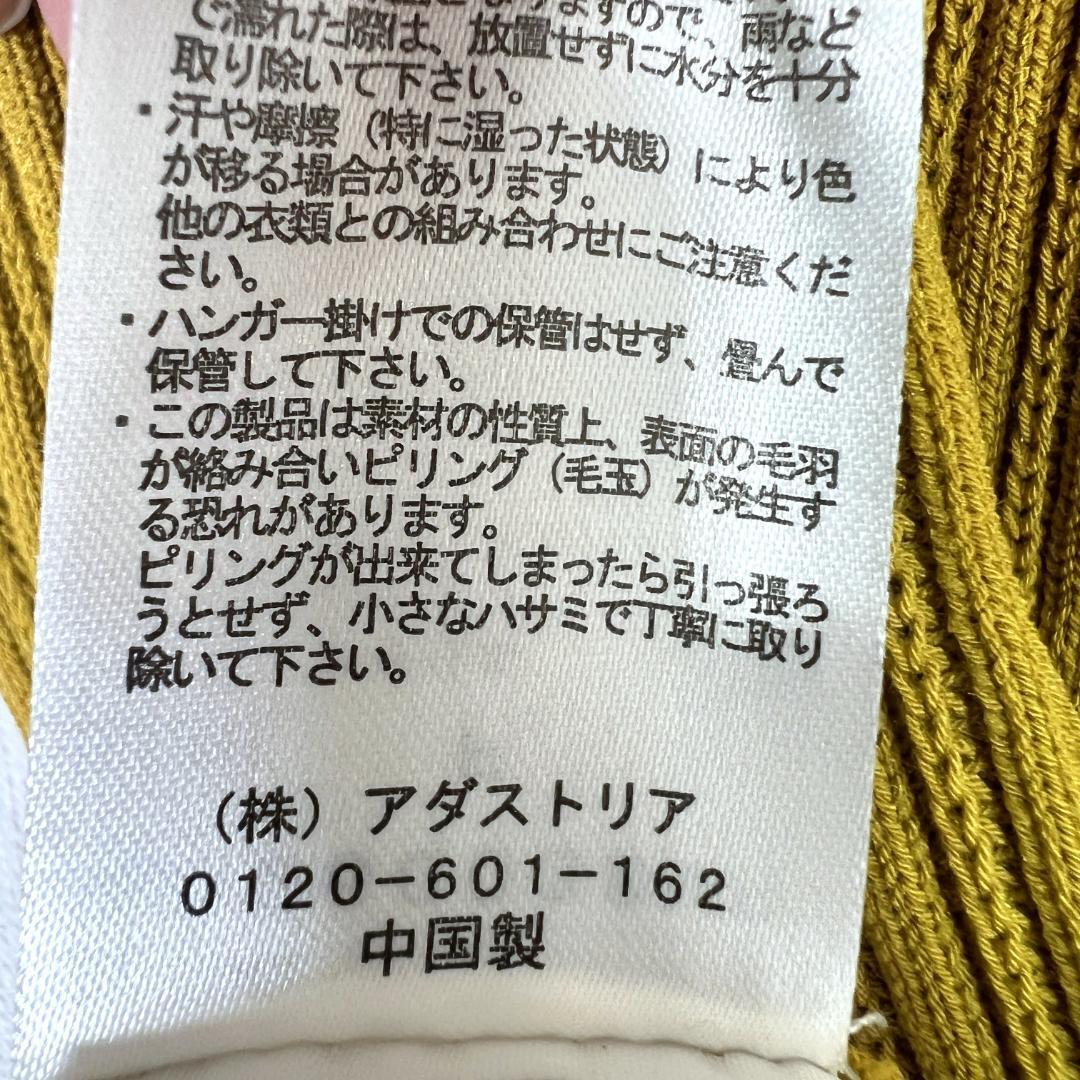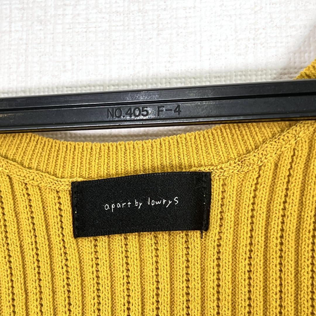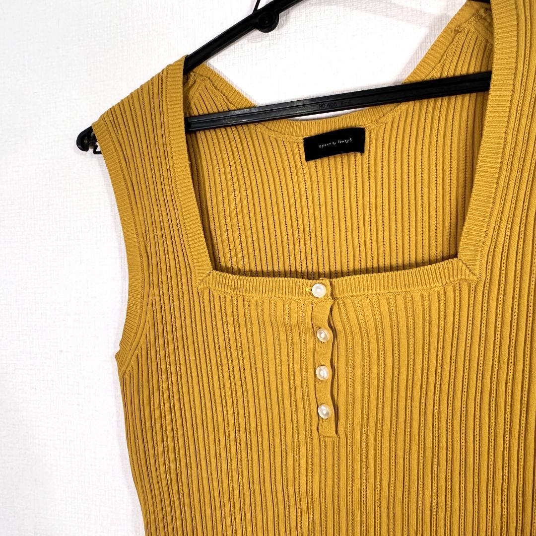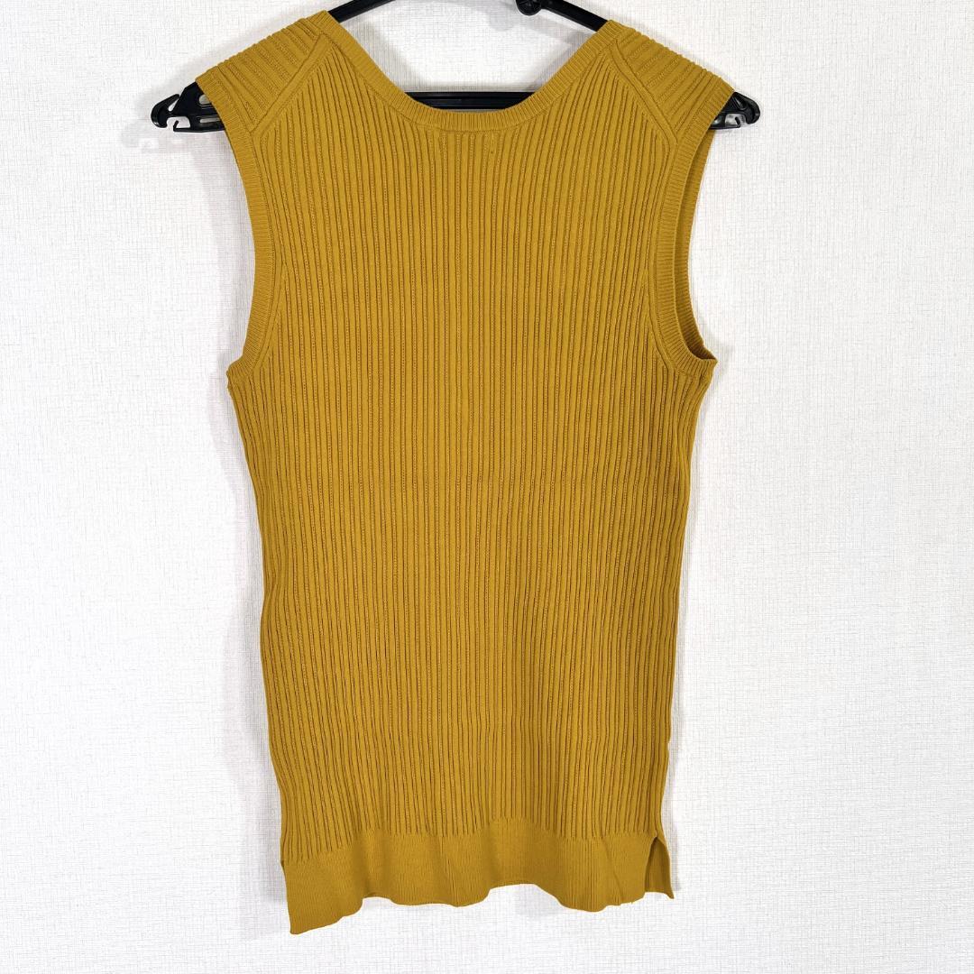 女性用のマスタード系のノースリーブトップス 袖なしセーター ベスト タンクトップです。中古品ですが目立つような傷や汚れもなくまだまだ使っていただけます。古着 アパートバイローリーズ アダストリア