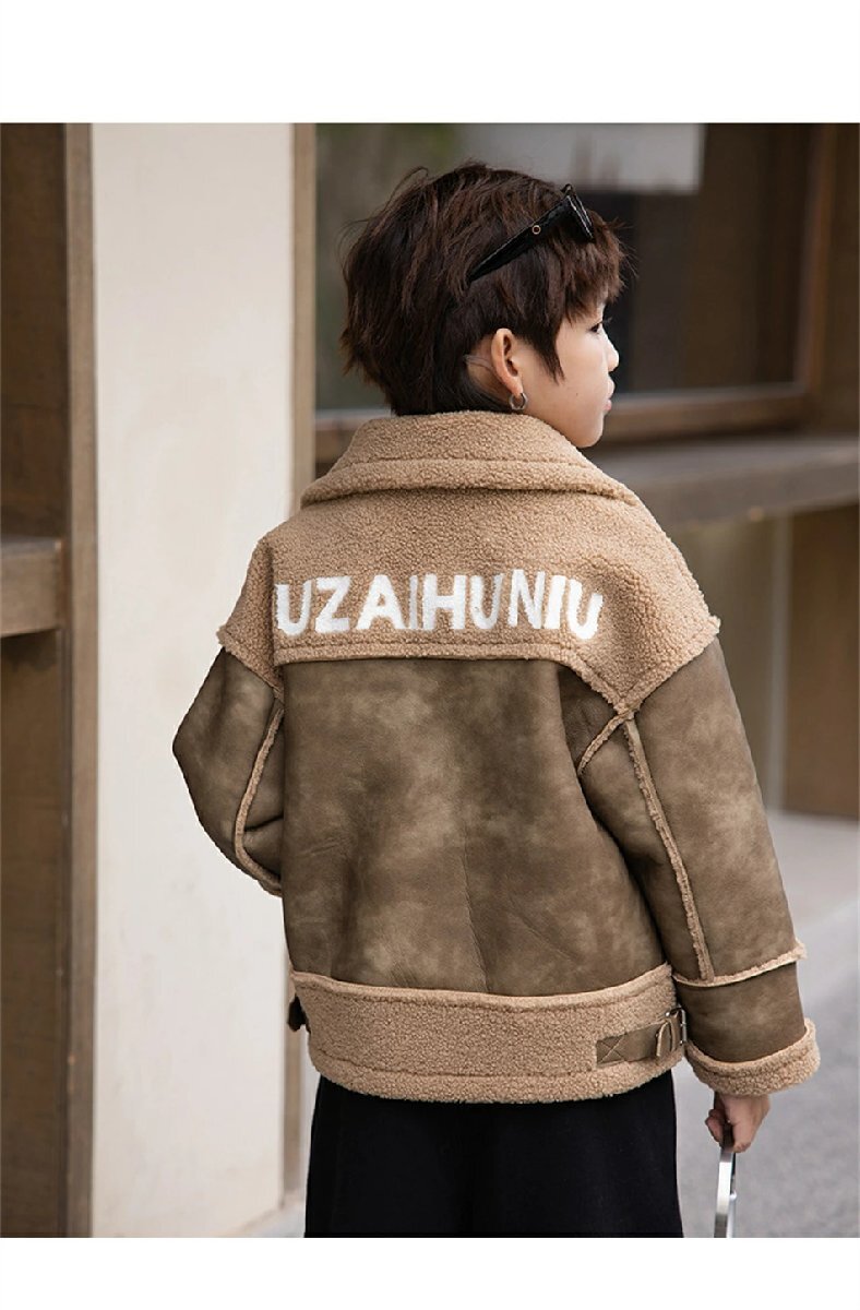 ボアコート(ブラウン)150(145~154cm)裏起毛 男の子 女の子 冬子供服 ジャケット 厚手 パーカー ロング アウター 韓国 子供服 上着