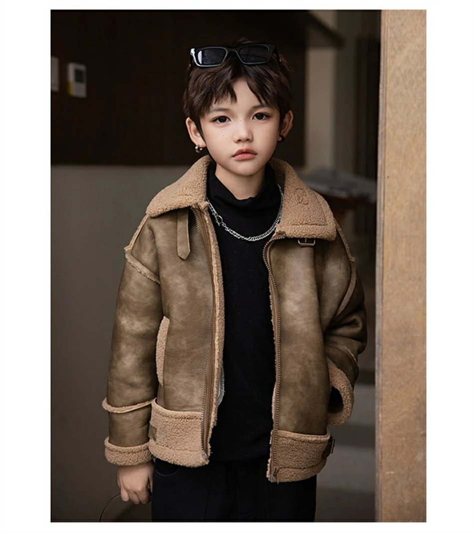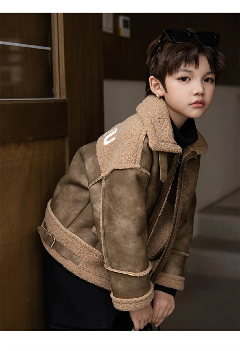 このボアコートは、寒い冬の日に最適な子供用アウターです。
