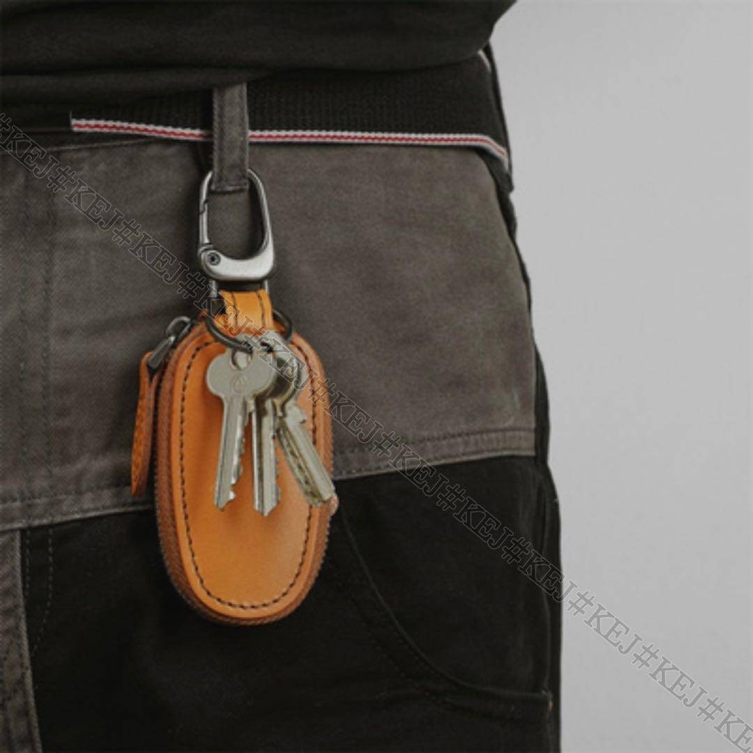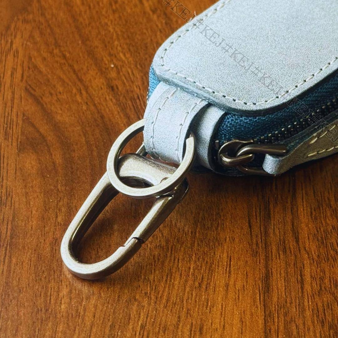 機能性にも優れており、内側には複数の鍵を整理できるキーチェーン付き。さらに車のスマートキーも収納できるサイズ感で、実用性の高いつくりになっています。取り外し可能なカラビナとキーリングを装備しているので、ベルトループやバッグに装着しても便利。外出時の持ち運びをスマートに演出してくれます。