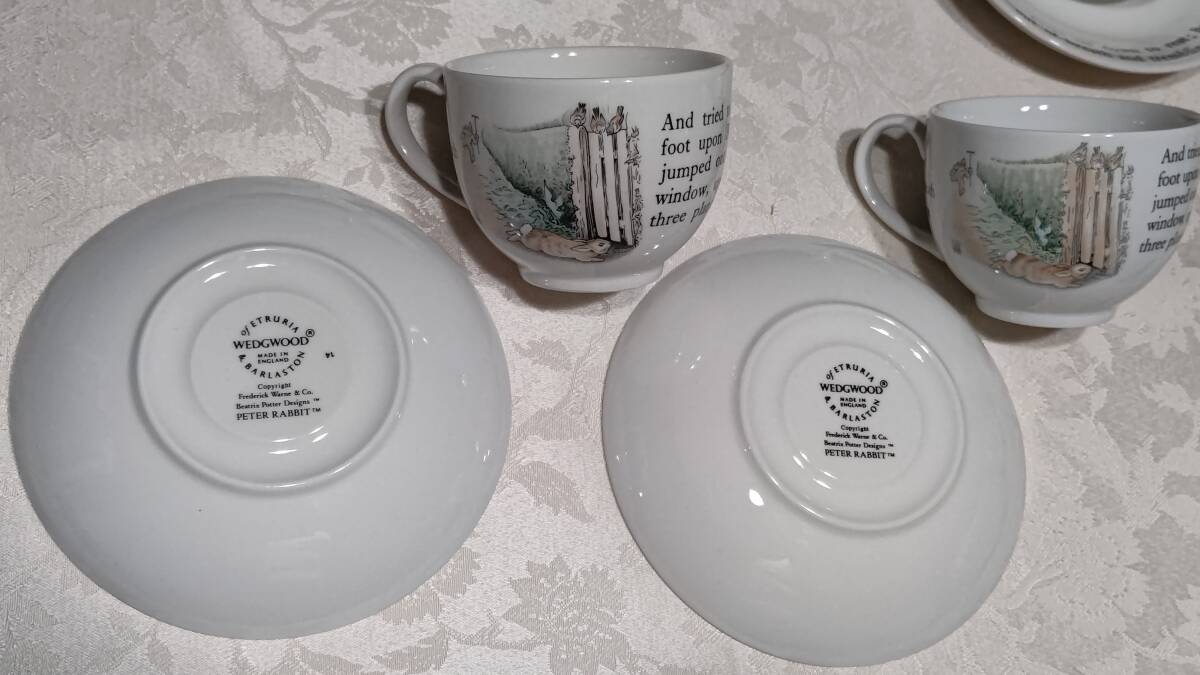 827-2 英国製 旧刻印 ウエッジウッド ピーターラビット カップ(8.5×6.6cm)&ソーサー(14.5㎝) 4客セット