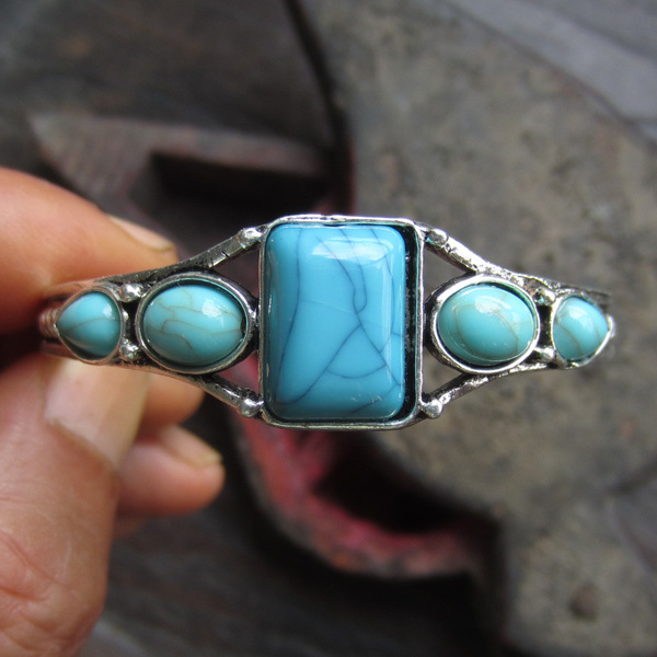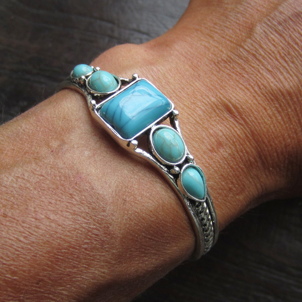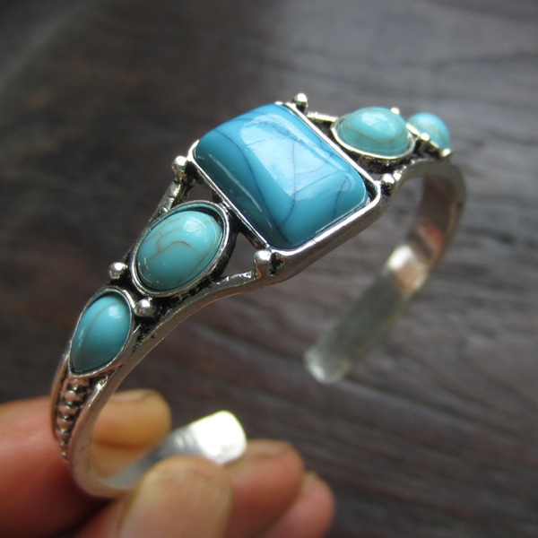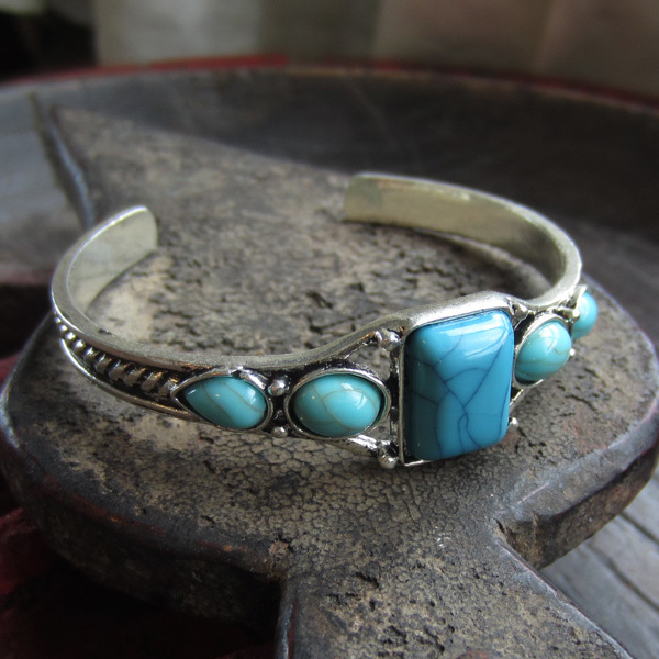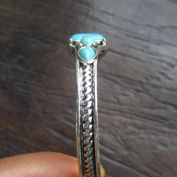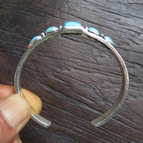カジュアルなシルバー&ターコイズデザインのバングルです。