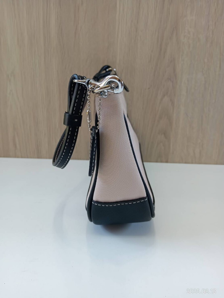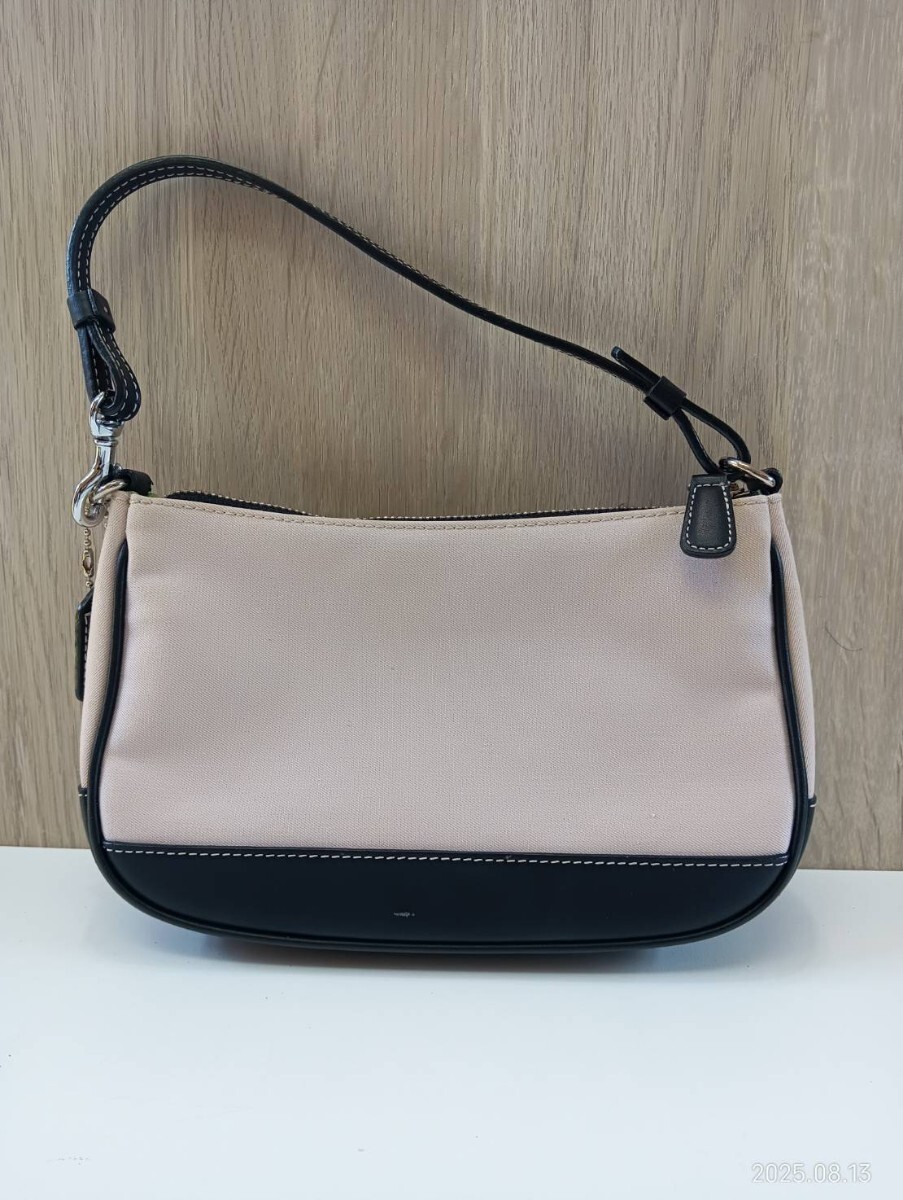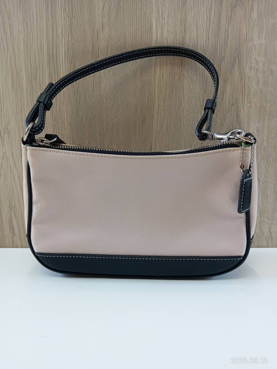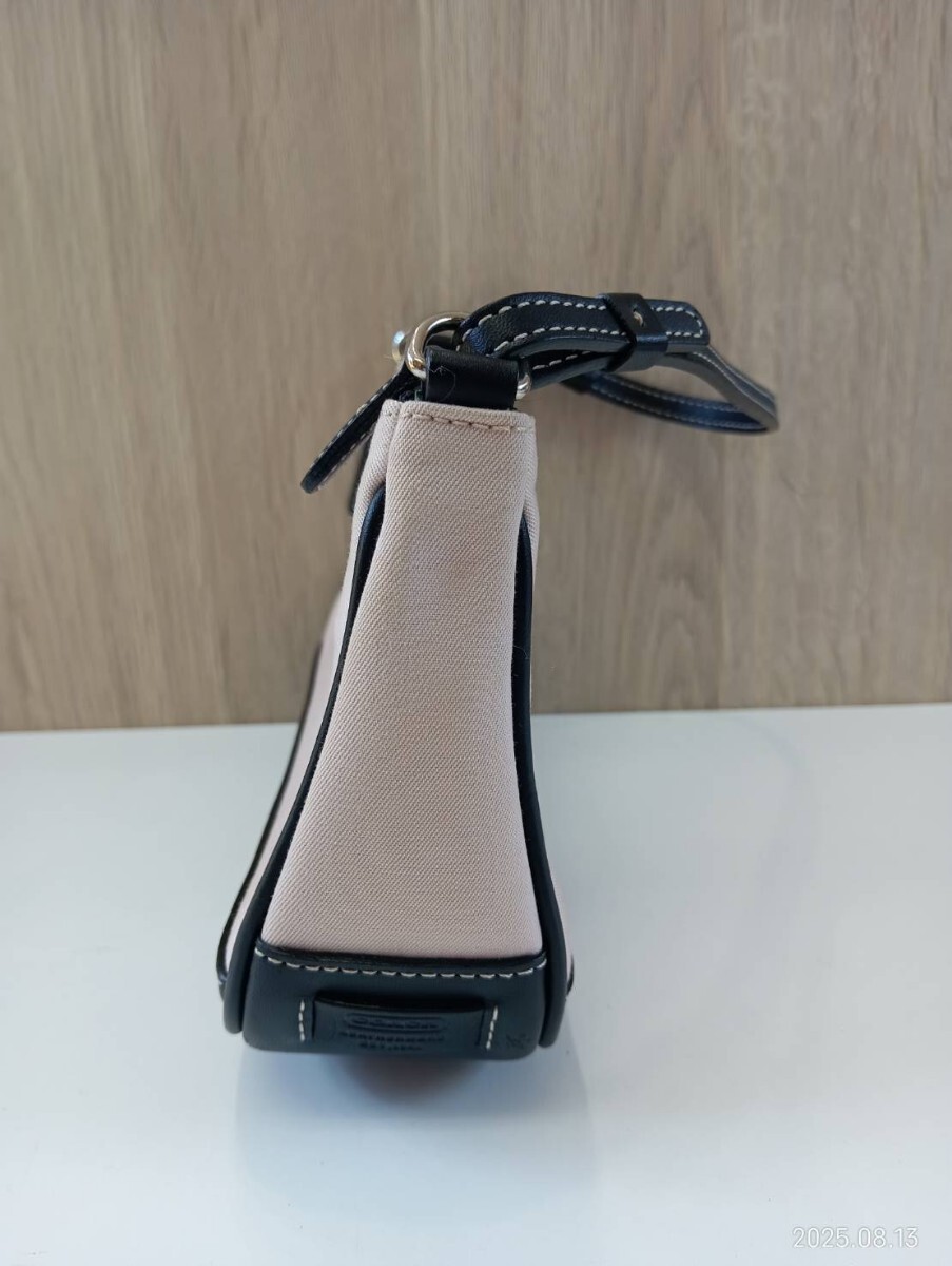 【中古品】コーチ COACH ミニポーチトートバッグ ハンドバッグ ピンクベージュ ブラック レディース 現状品