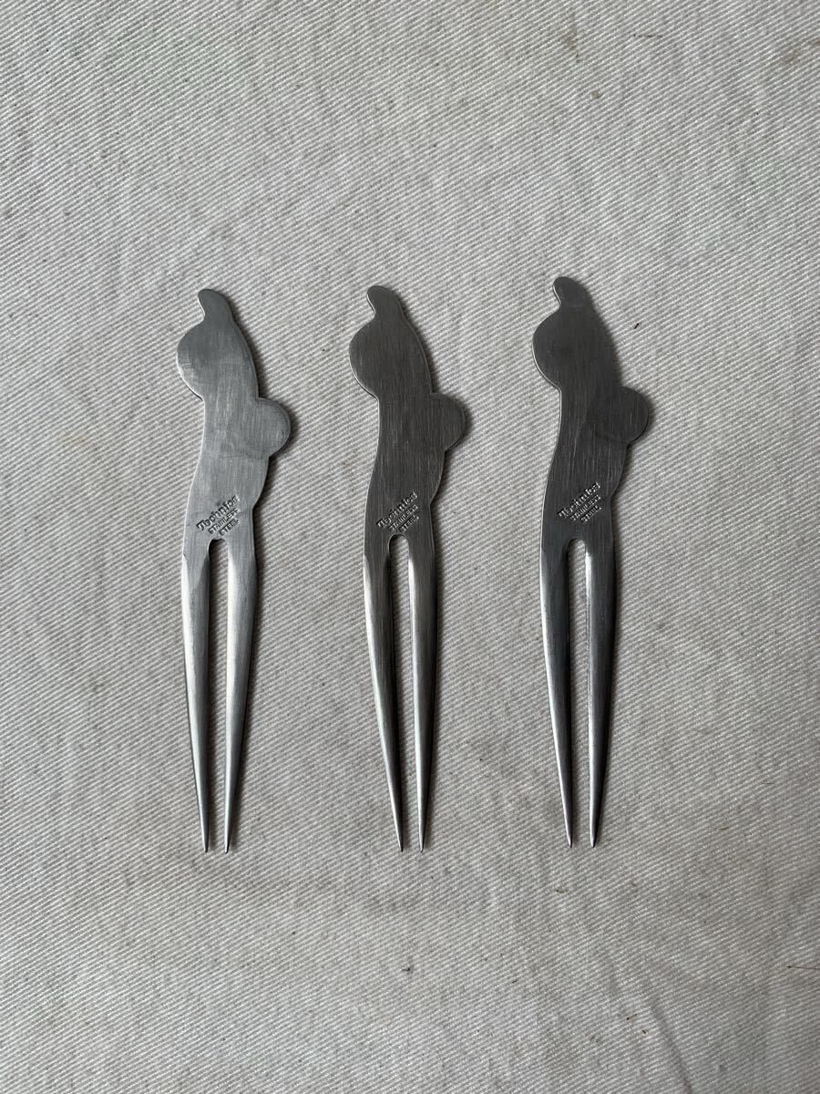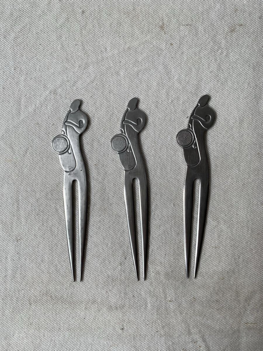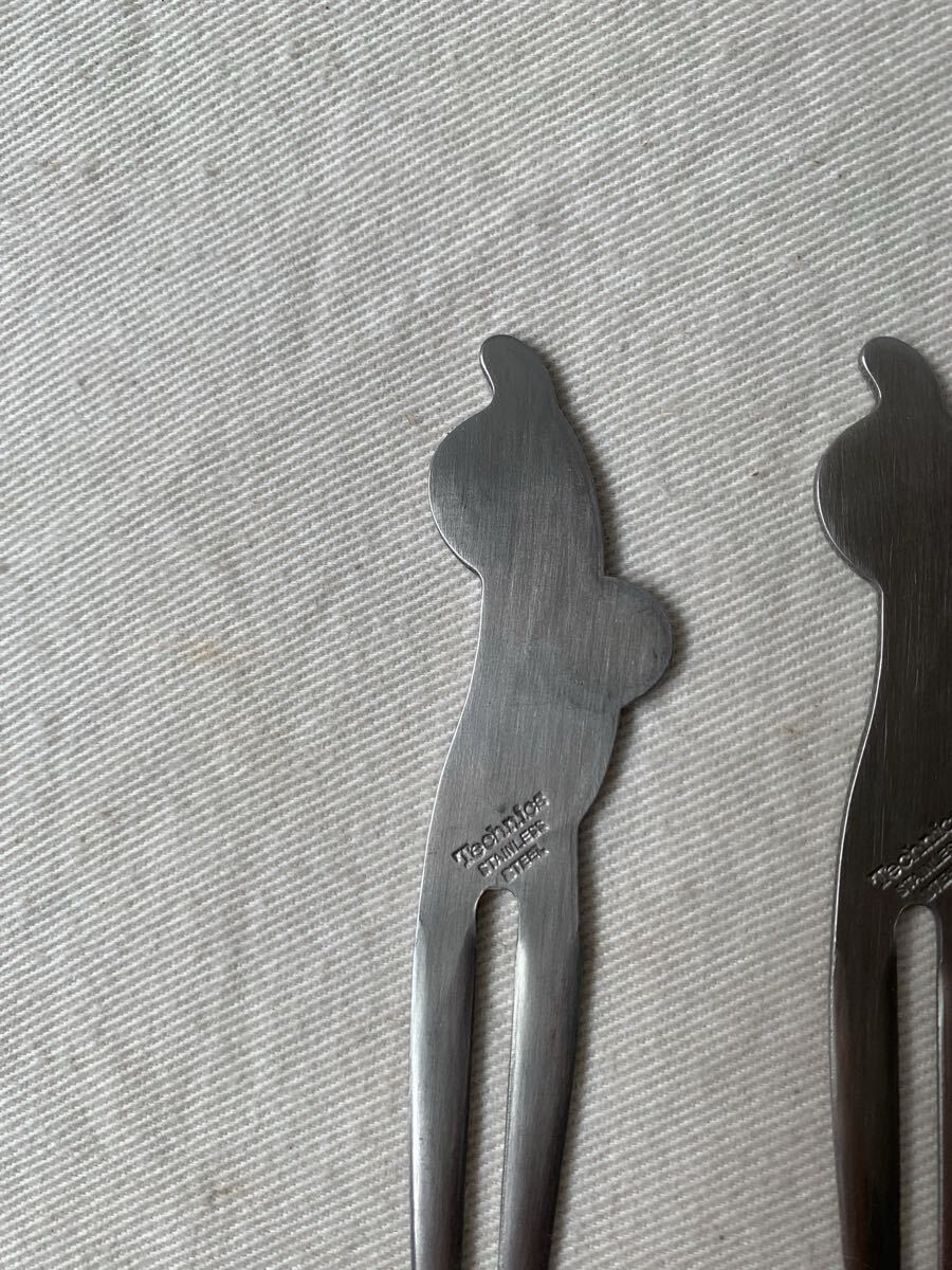 デッドストック品 デザインが素敵なミュージシャン型フォーク3本セットです。お部屋のインテリアやお店のディスプレイ、イベント出店時の什器などに使って頂くと素敵だと思います。