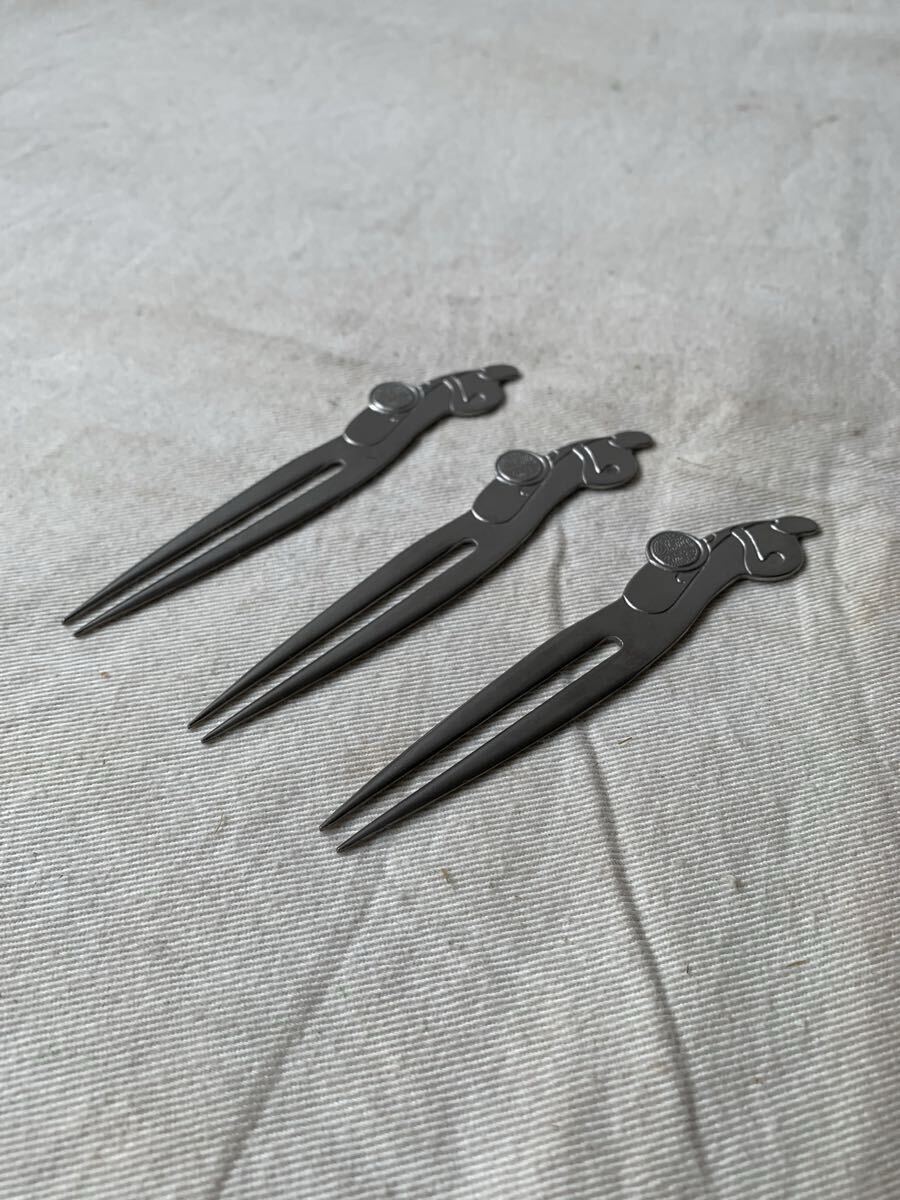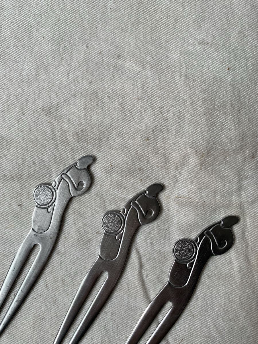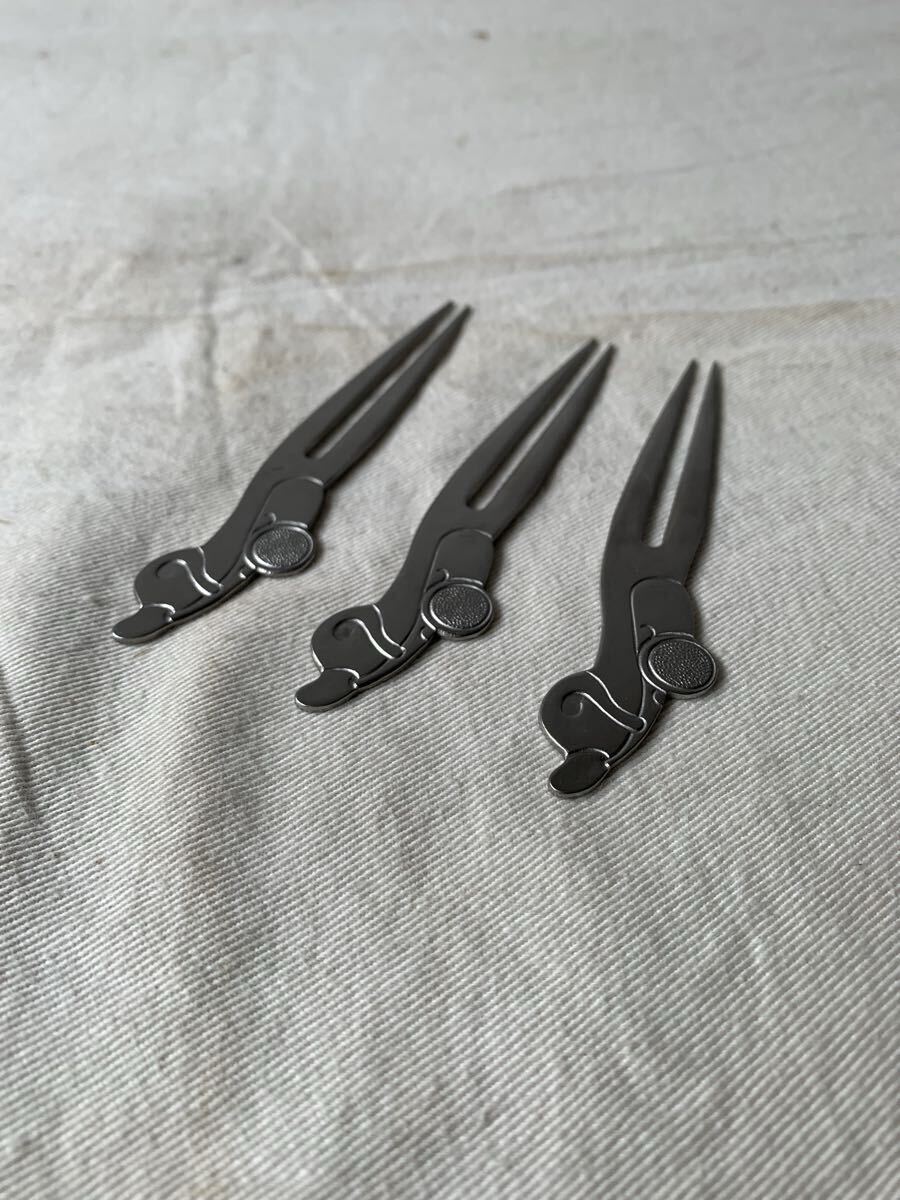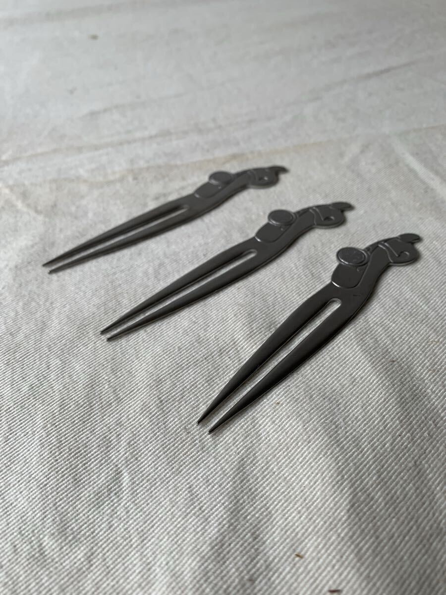 デッドストック品 デザインが素敵なミュージシャン型フォーク3本セットです。お部屋のインテリアやお店のディスプレイ、イベント出店時の什器などに使って頂くと素敵だと思います。